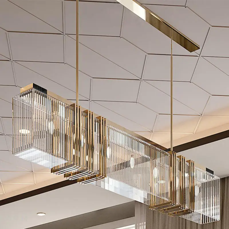 Metal Frame Pendant Light Fixtures Dining Room Rectangular Luxury Modern K9 Led Crystal Chandeliers
