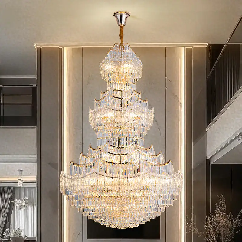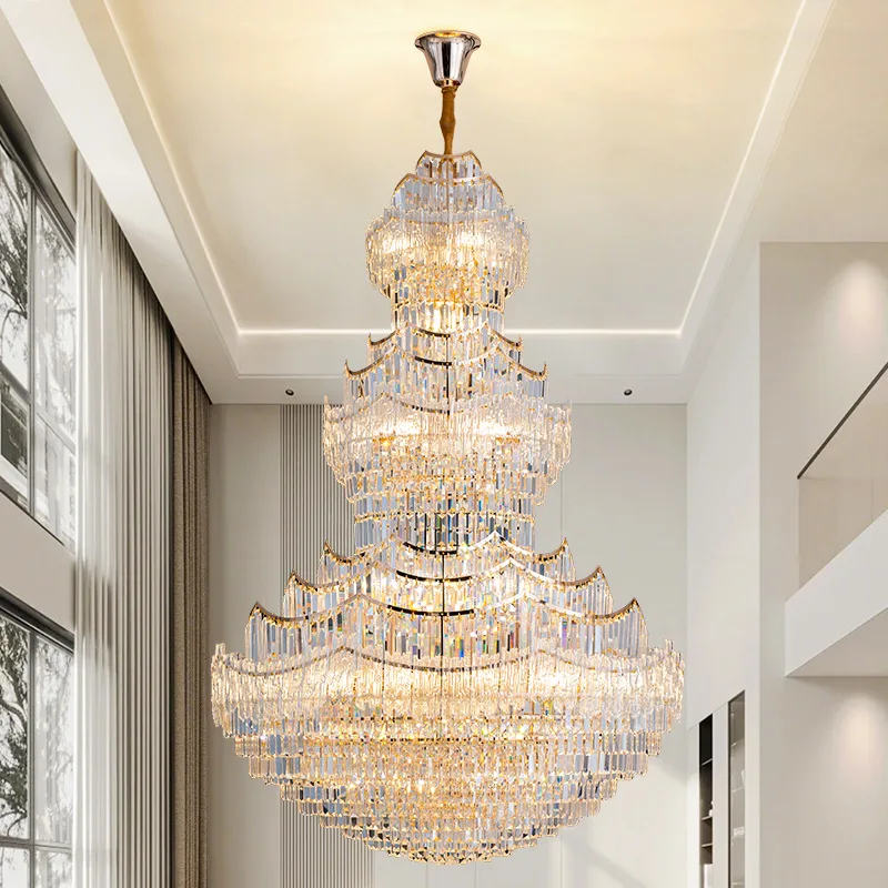 High Ceilings Villa Duplex Building Luxury Modern Large Long K9 Crystal Chandeliers for Villas Staircases