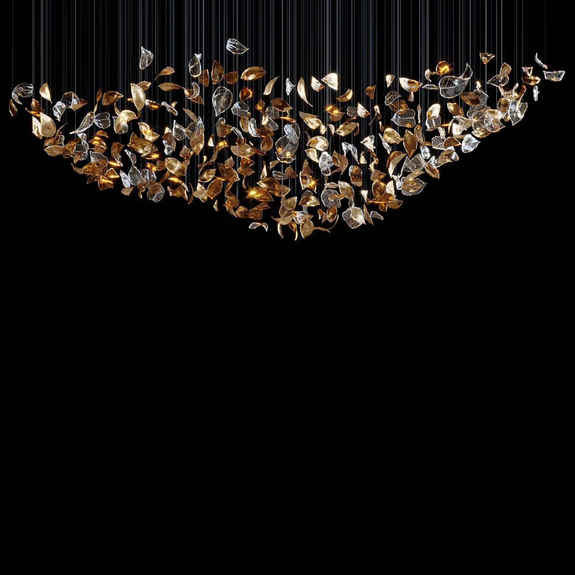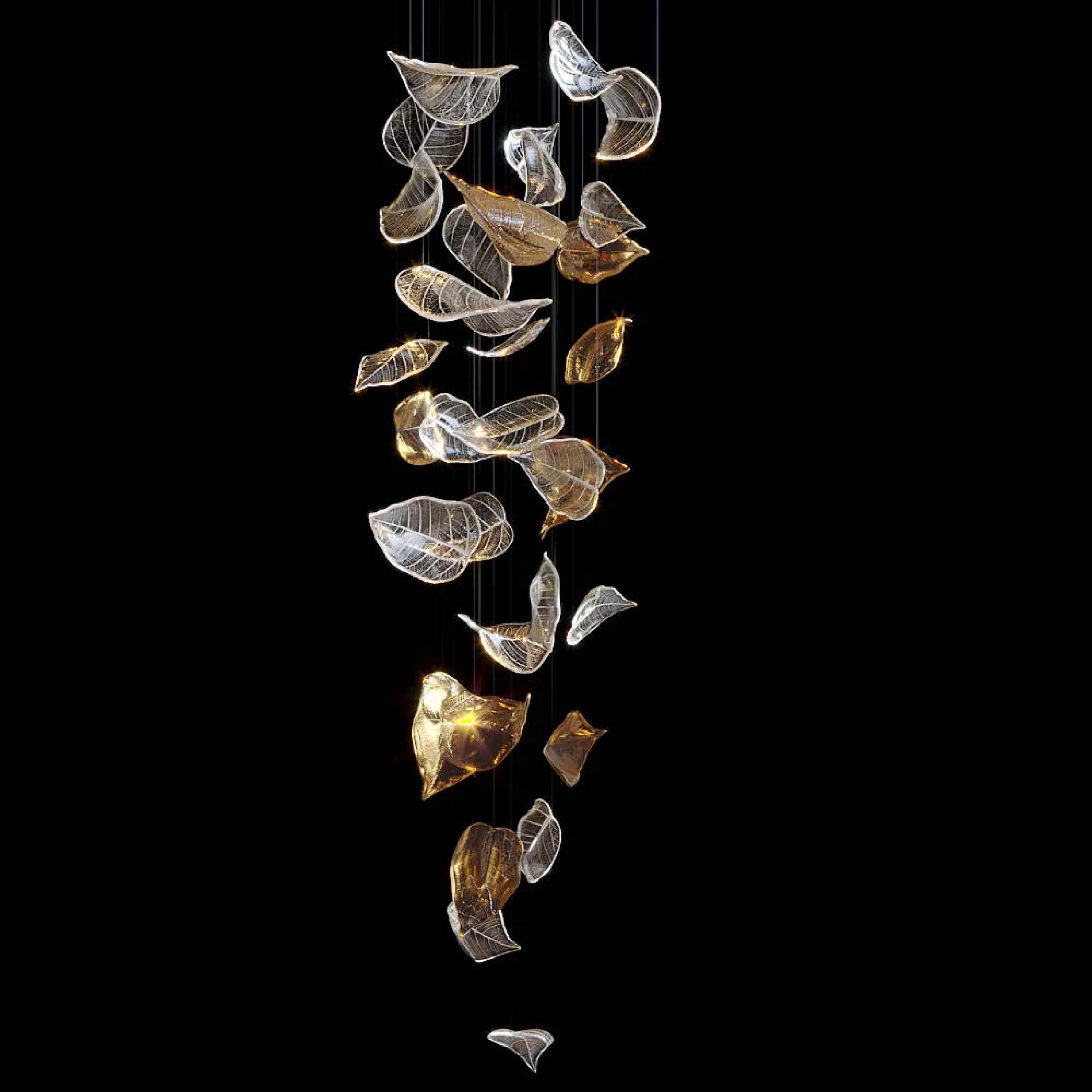 Customizable Modern Design Shopping Mall Handmade Glass Leaf Chandelier Large Ceiling Installation in the Living Room