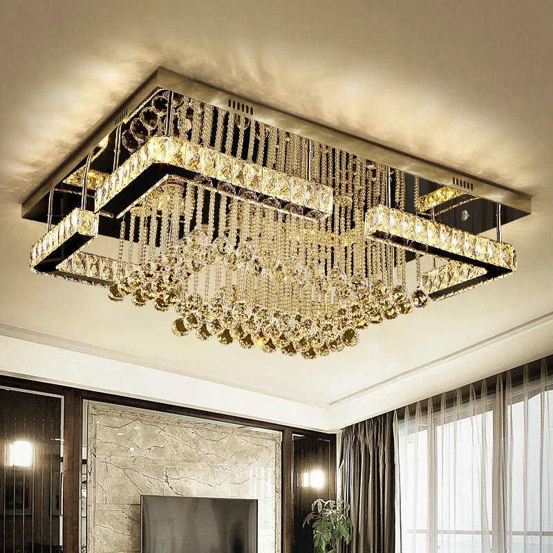 Crystal Ball Rectangle Ceiling Lamp Living Room Villa Large Rectangular Fancy Luxury Led Chandelier Light