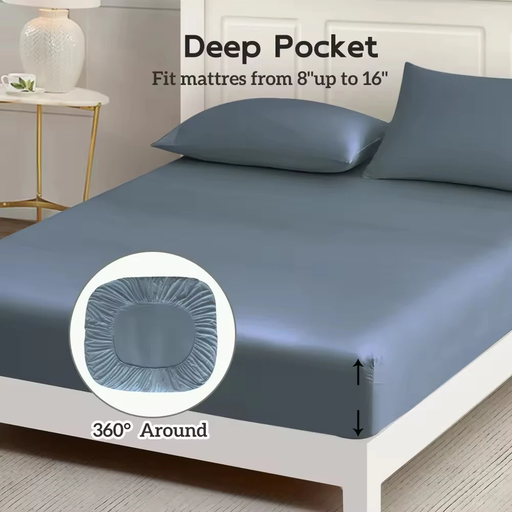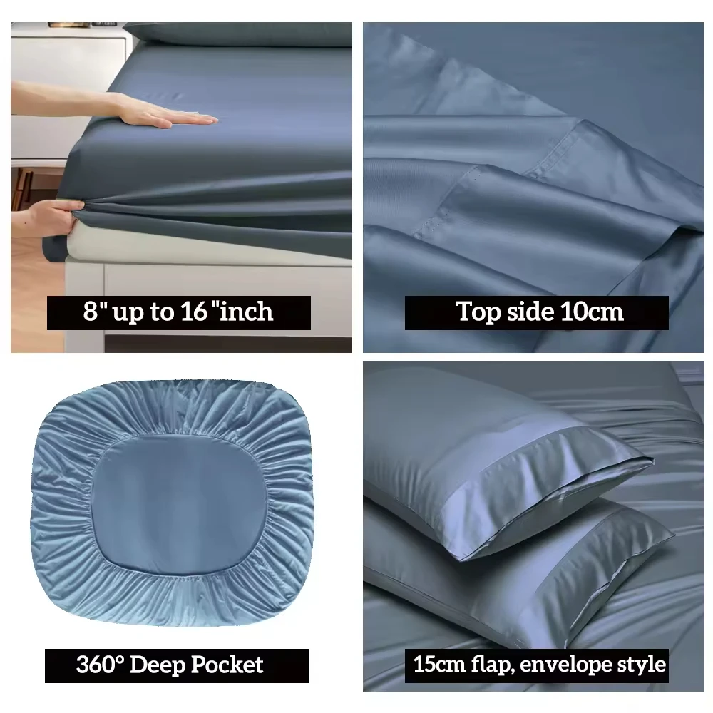 Wholesale Eco Friendly Ultra Smooth 100% Bamboo Fiber 4-Piece Bedding Sheets Cover Set OEKO-TEX Certified Cooling Breathable