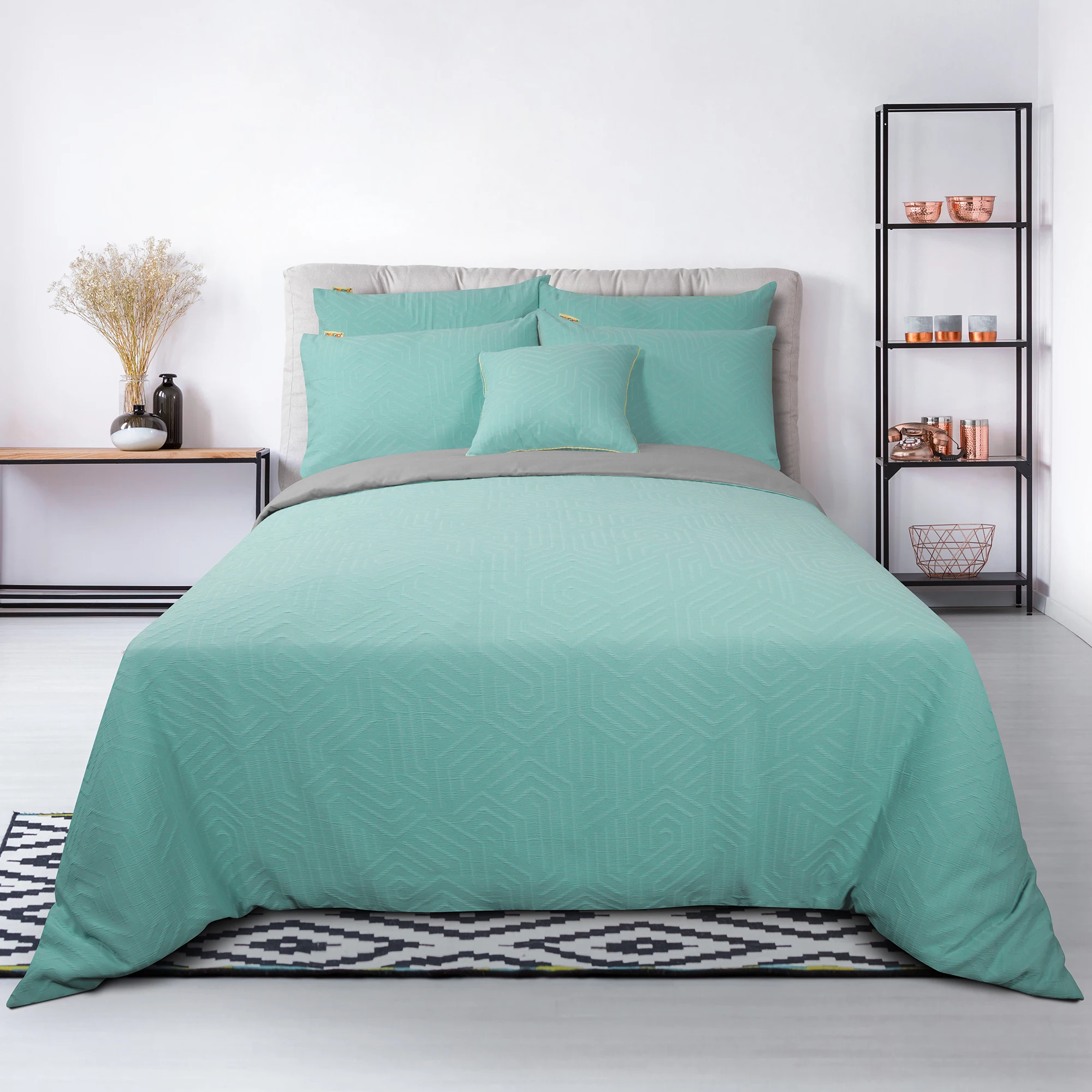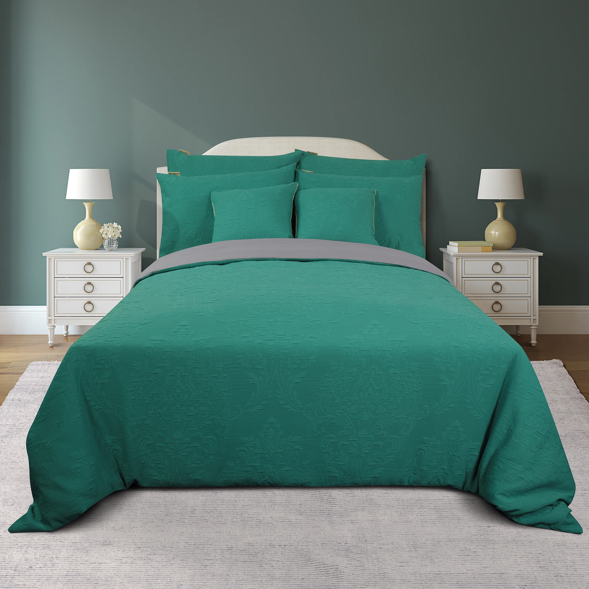 100% Bamboo Fiber Woven Modern Solid Color Bedding Set Super King Size Includes Flat Bed Sheet Fitted Duvet Cover