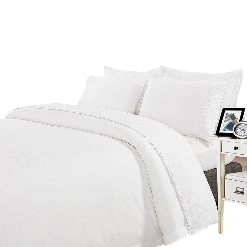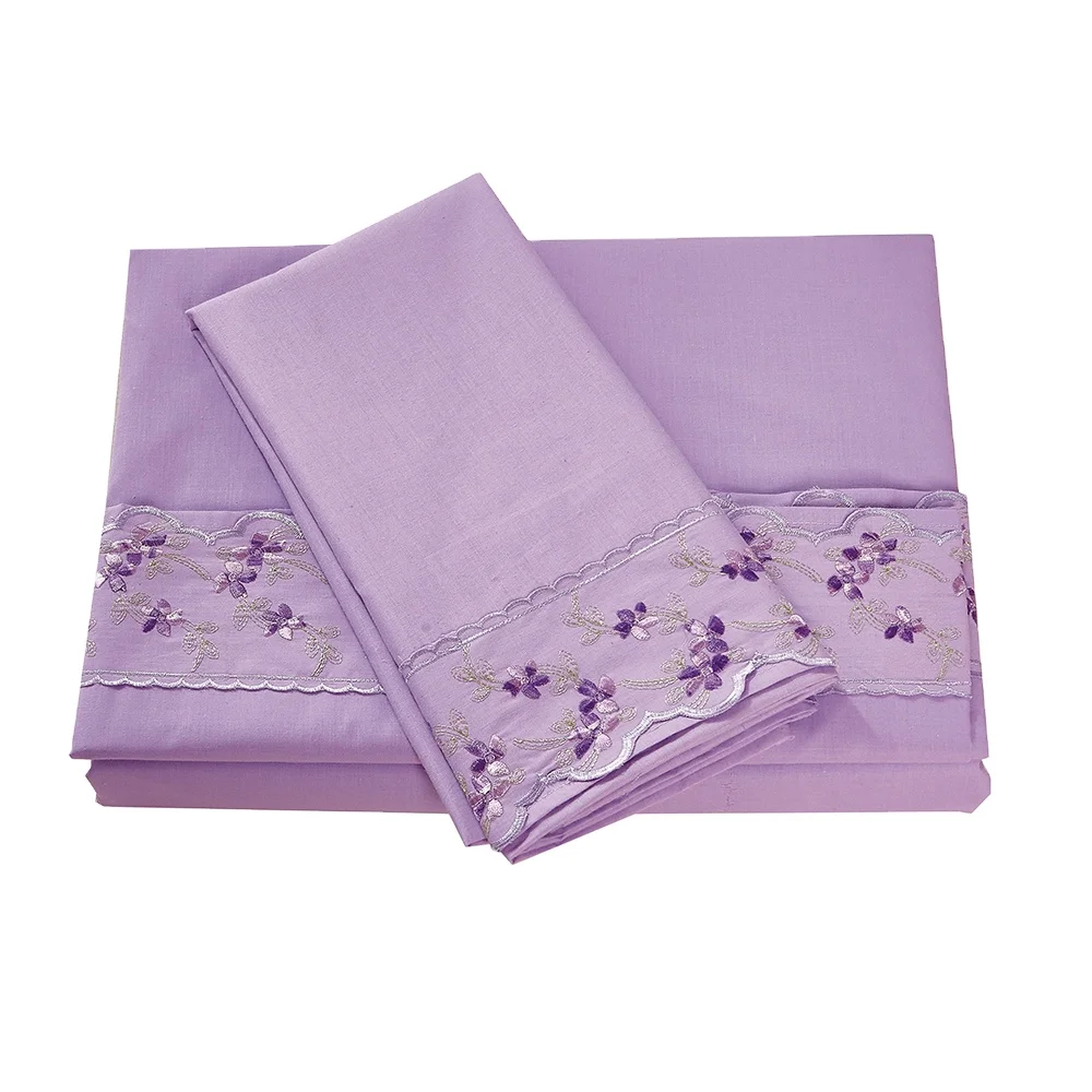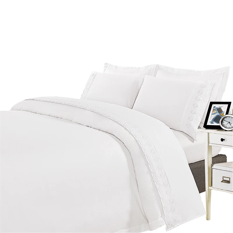 Wholesale 4Pc King Size Polyester Bedding Bed Sheet Sets with Embroidered Lace