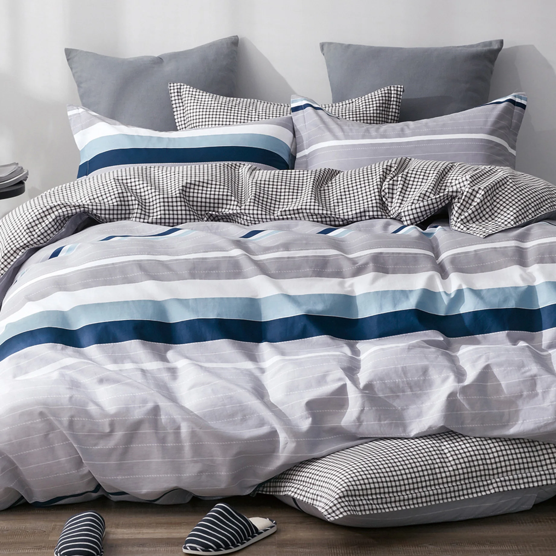 Single Double Queen King Cotton Plaid Pattern Custom Print 3pcs Duvet Cover Luxury Bedding Sets