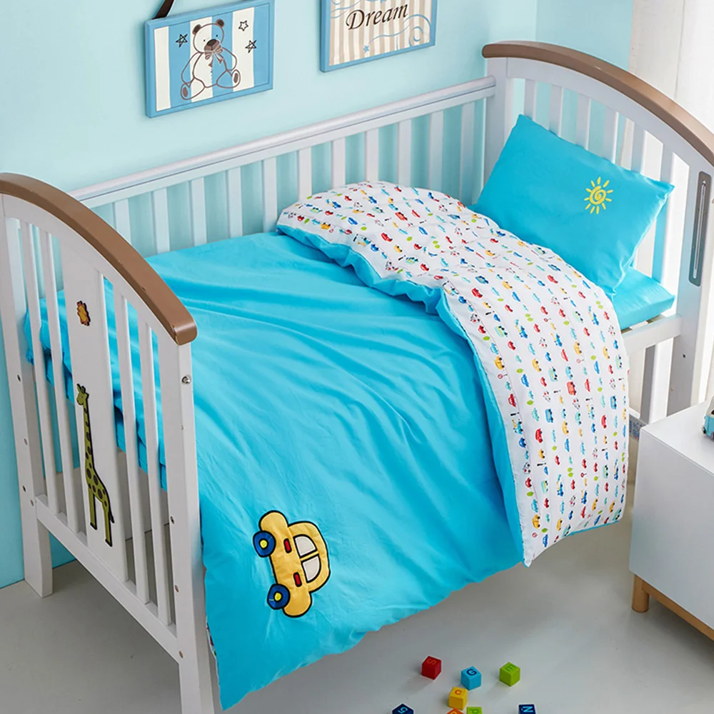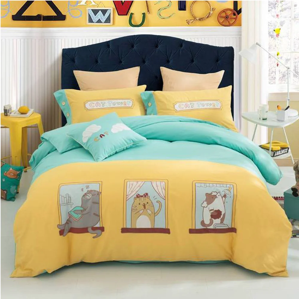 Breathable Warm 3D Printed Cartoon Duvet Cover Pure Cotton Fitted Sheet Four-Piece Kids Bedding Set