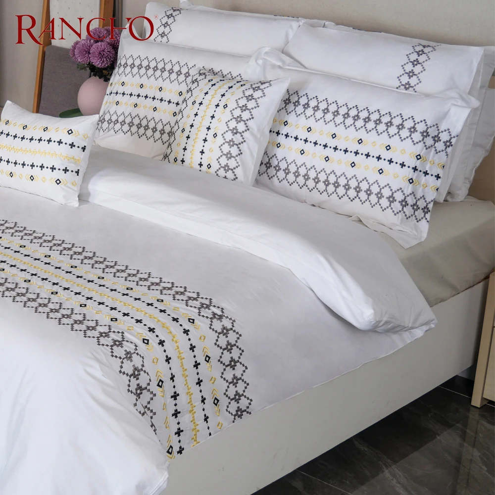 Embroidery White Duvet Bedding Set High Quality Cotton Embroidery Comforter and Pillowcases for Home Hotel Wedding