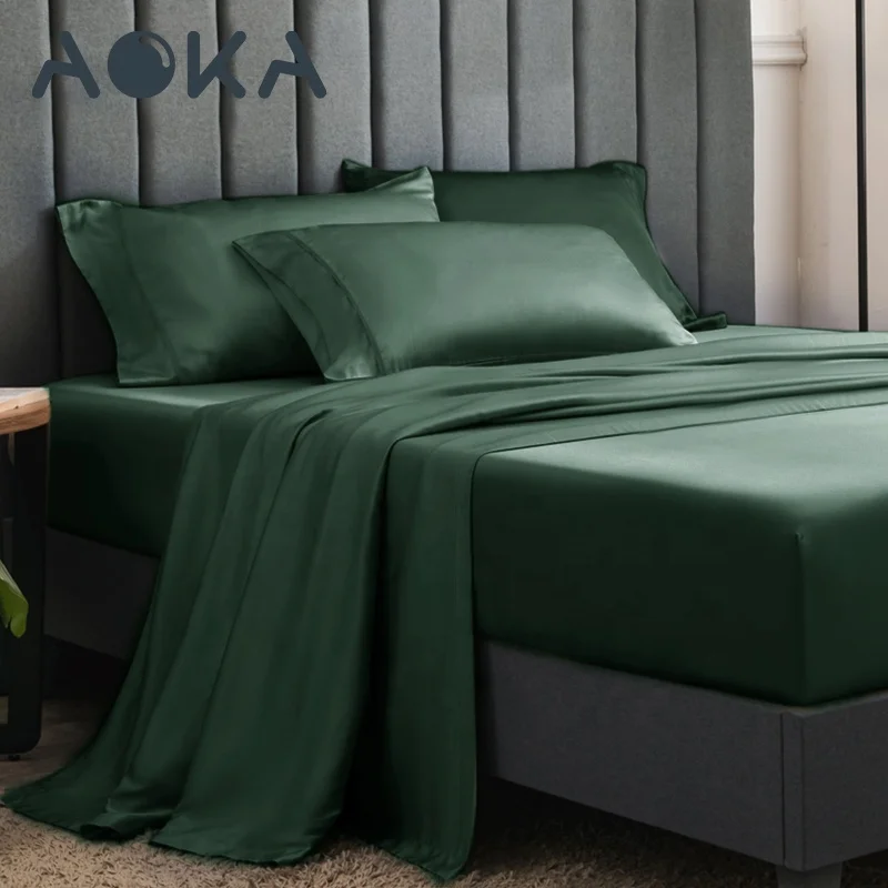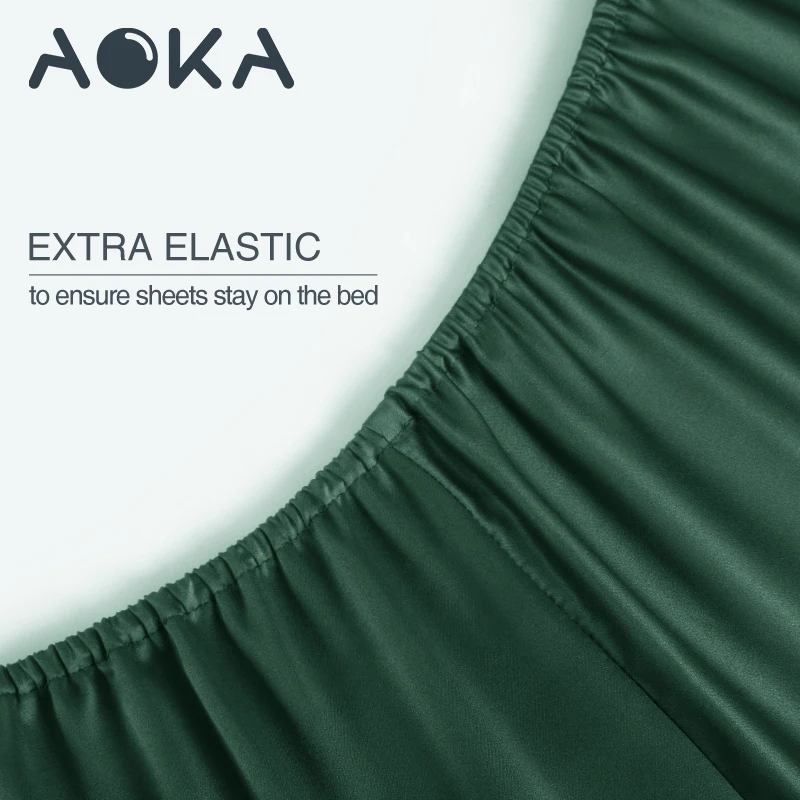 AOKA USA Luxury Silky King Plain Polyester Satin Bedding Set Breathable Shinny Sheet Sets 1800 Thread Count Bed Sheet Set
