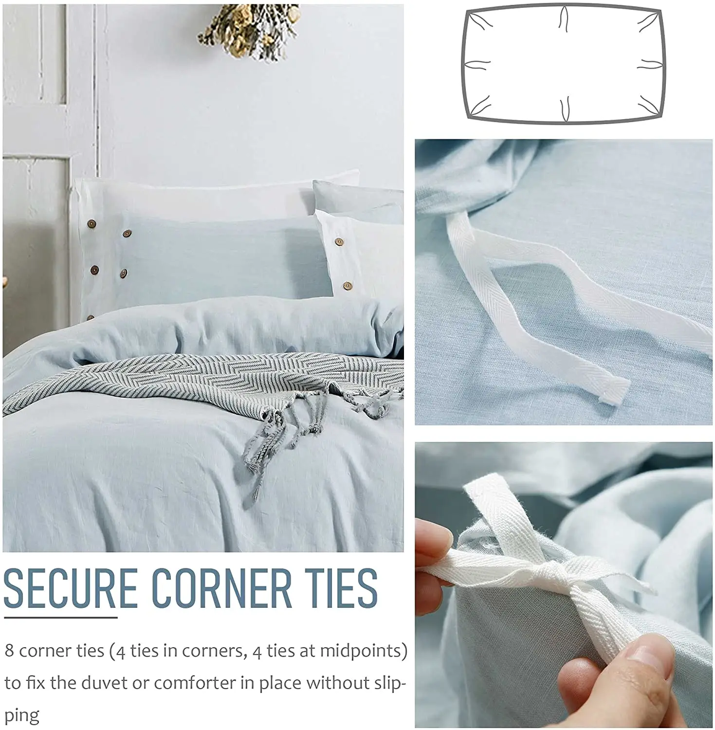 100% Linen Duvet Cover Set Washed-French Flax Solid Color Basic Style Bedding Set Breathable Soft Duvet Cover