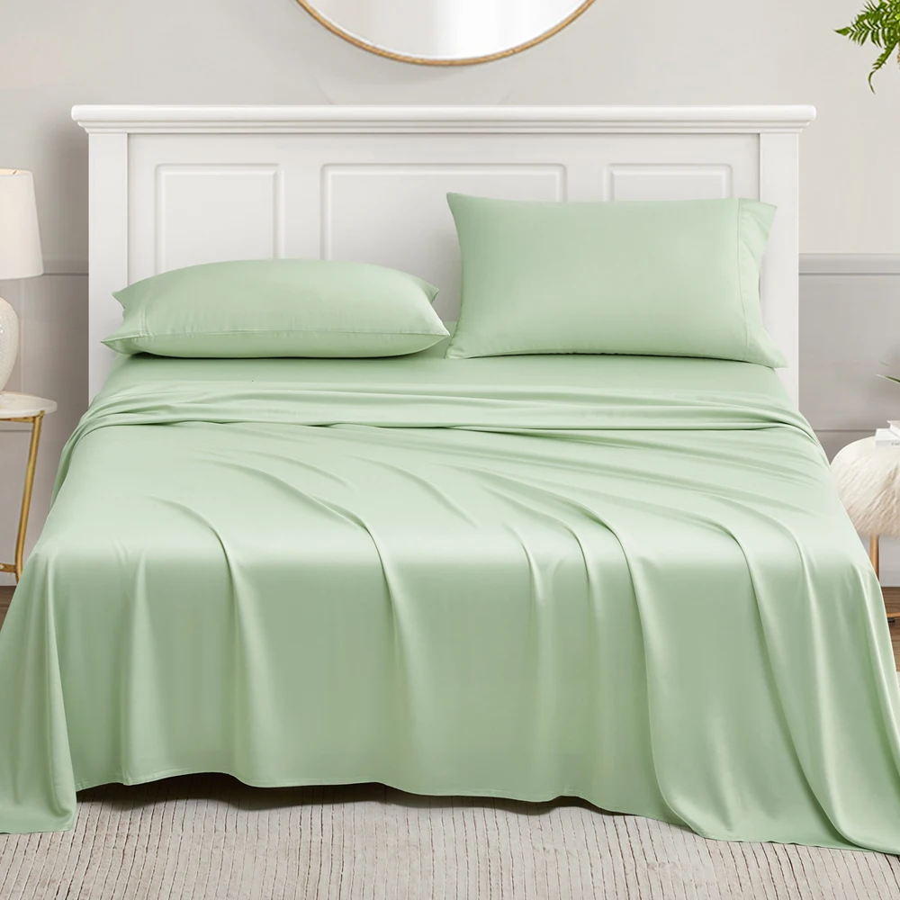 100% Bamboo Woven Modern Solid Color Bedding Set Flat Sheet Fitted Sheet Pillowcases 300tc Thread Count Wedding Four-piece Kit