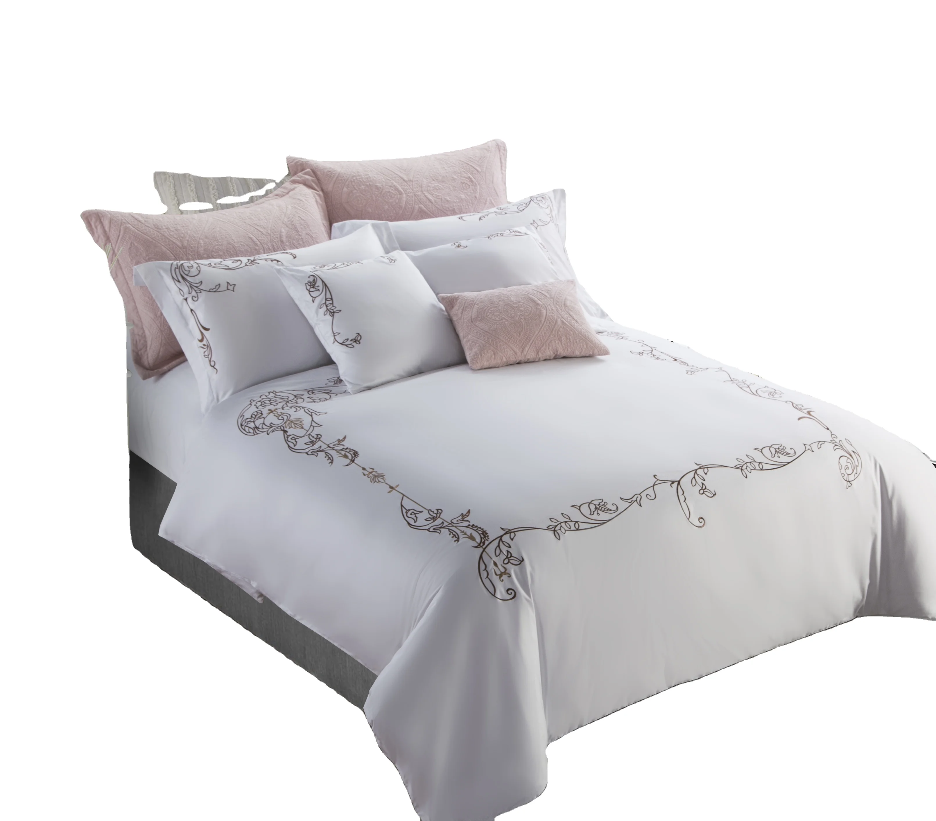 Kosmos Embroidered Bed Sheet Luxury 100% Cotton Bedding Duvet Cover Set