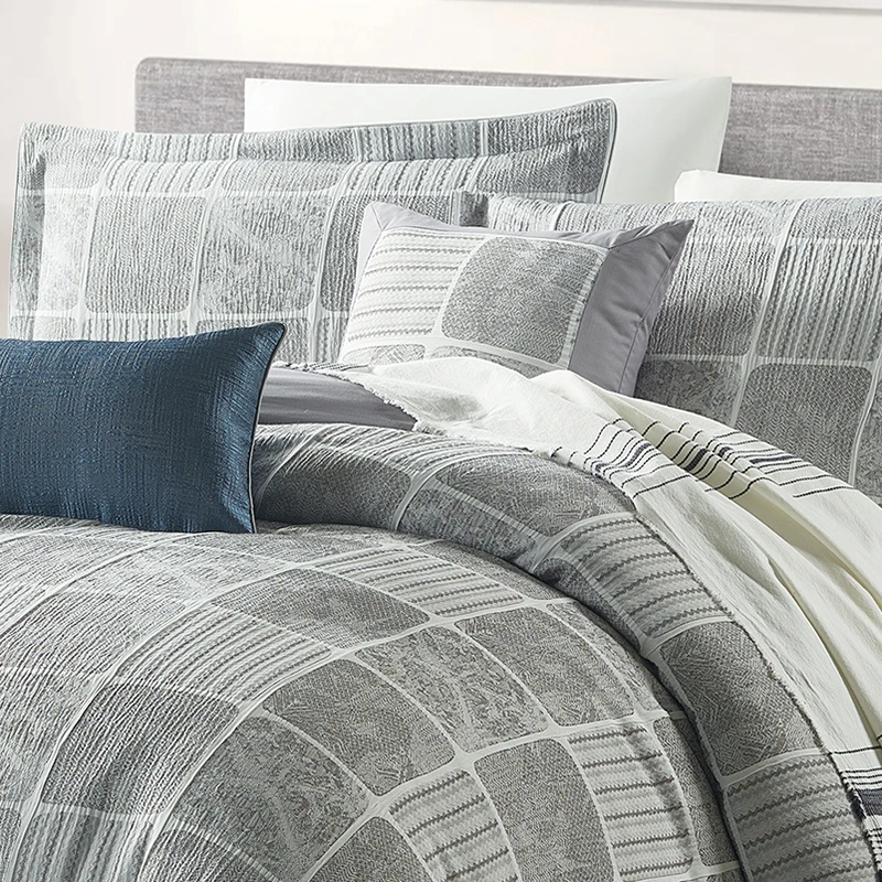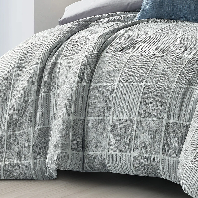 Factory Jacquard Comforter Set with Simple Style Checkered Stripes 200TC Thread Count 8-Piece Grey Bedding for All Homes