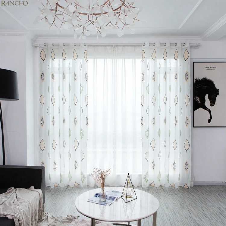High Quality Luxury Embroidered Curtains and Sheers Polyester House Linen Sheer Curtains Bedroom White for Living Room