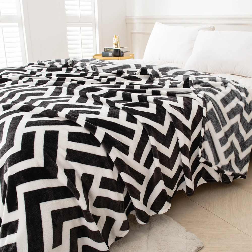 Digital Printing Blankets Flannel Microfibre Blanket Full Size Bed Geometric Patterns