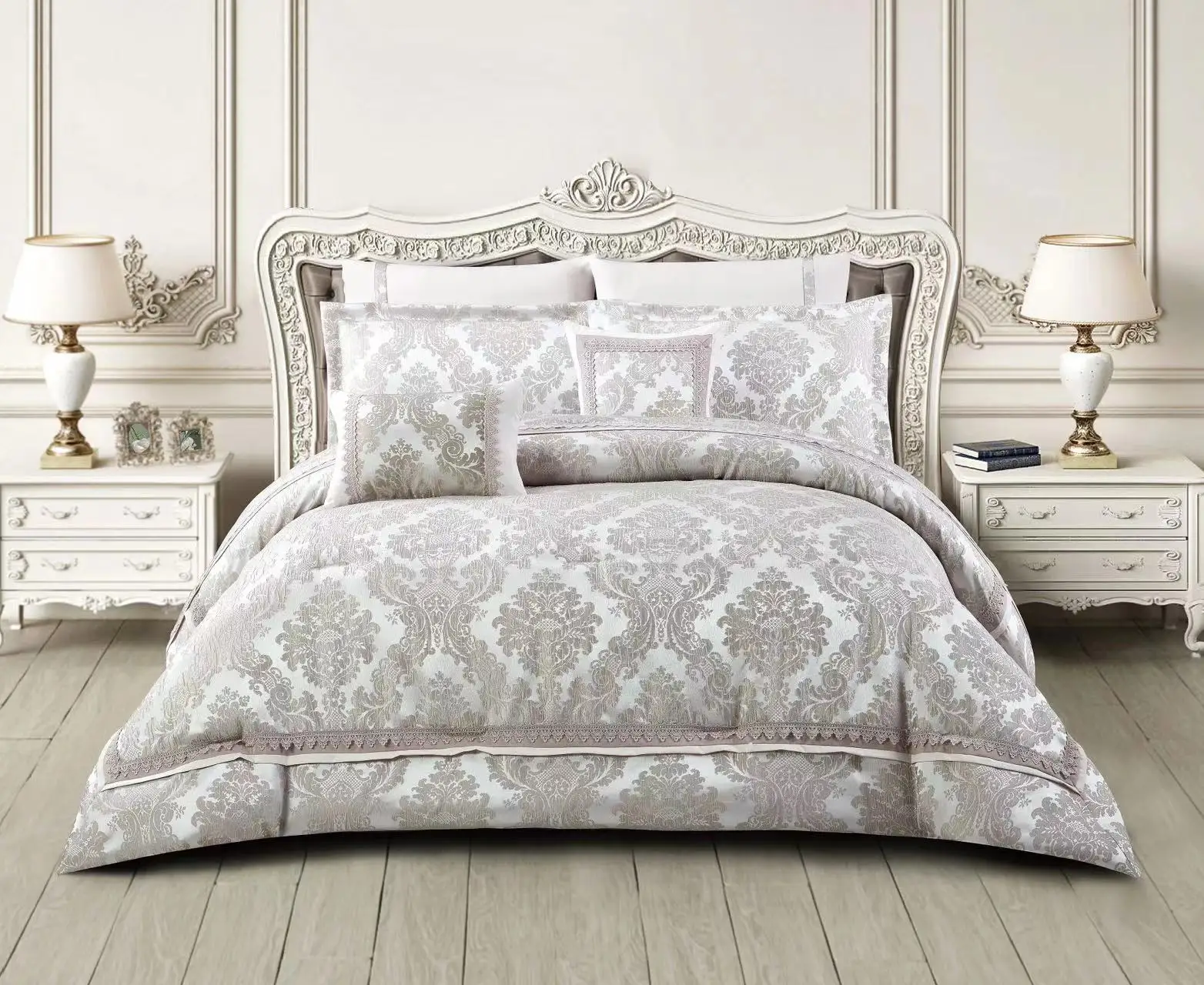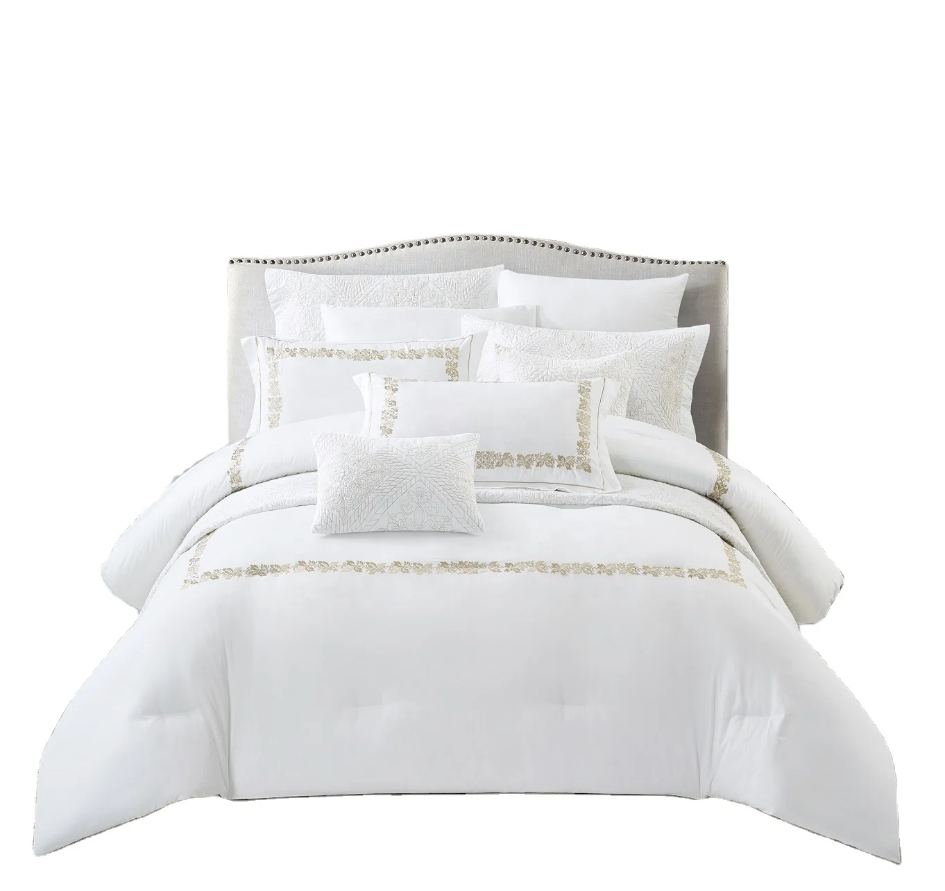 Kosmos King Size European Design Embroidered Microfiber Solid Color Comforter Set Luxury