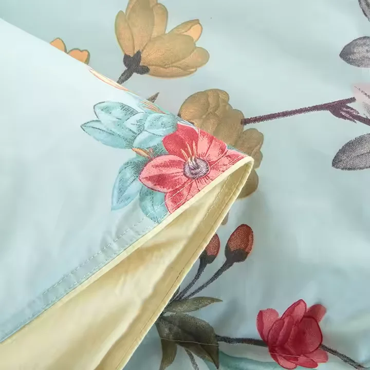 Bedroom Sets Sheets Flower Comforter Bed Sheet Set White Bed 5 Pieces Blue Floral Water Washing Sanding Queen Sheet Set