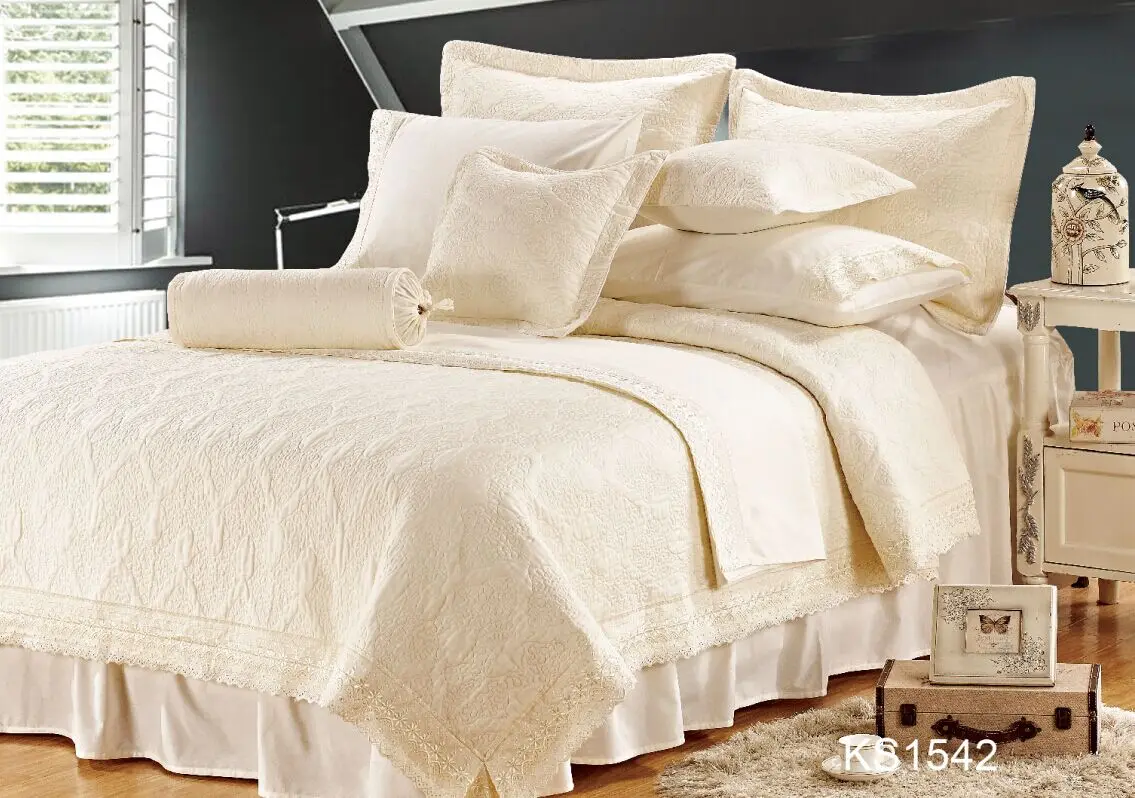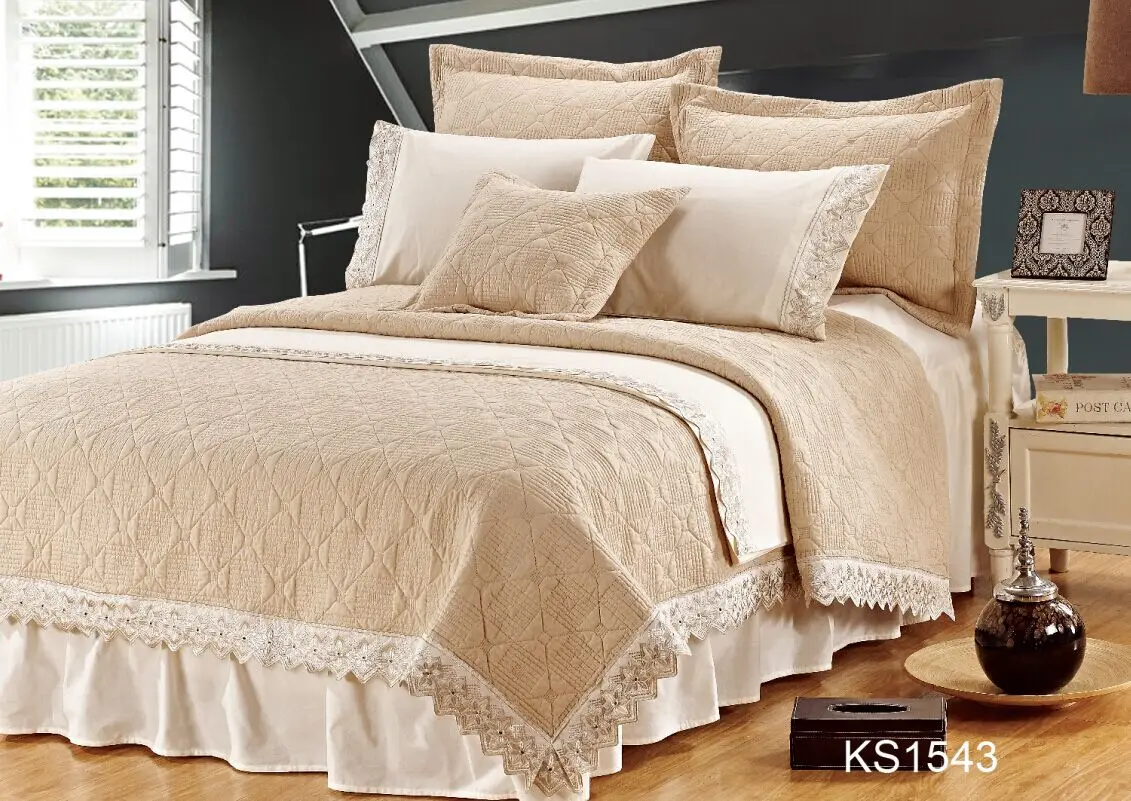 China Manufacturer Embroidery Design Quilts 100% Cotton Bedding Bedspread with Filling