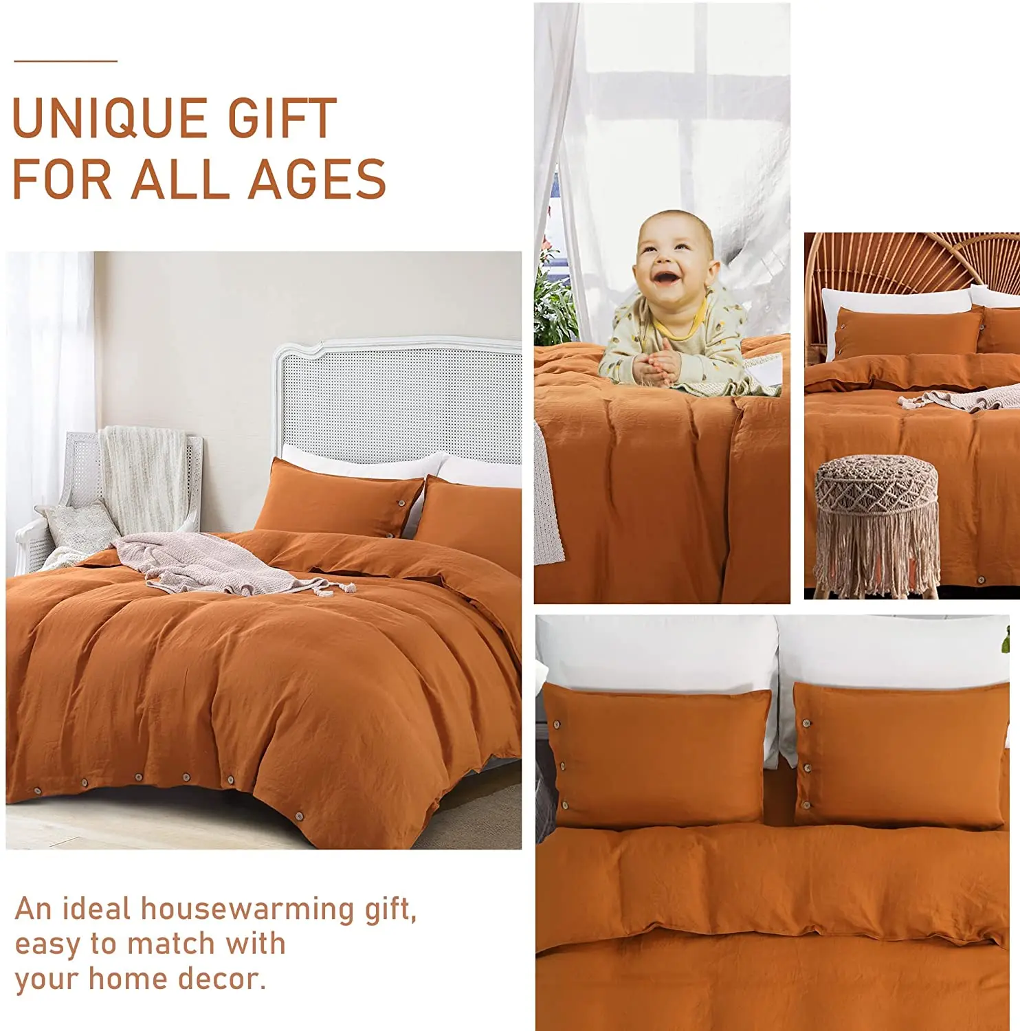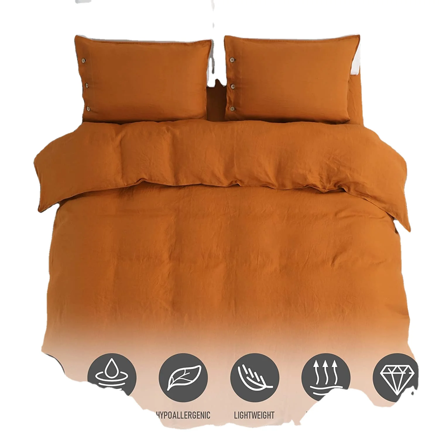 Modern King Size 4 Piece Moisture Wicking Bedding Set Cool French Linen Duvet Cover