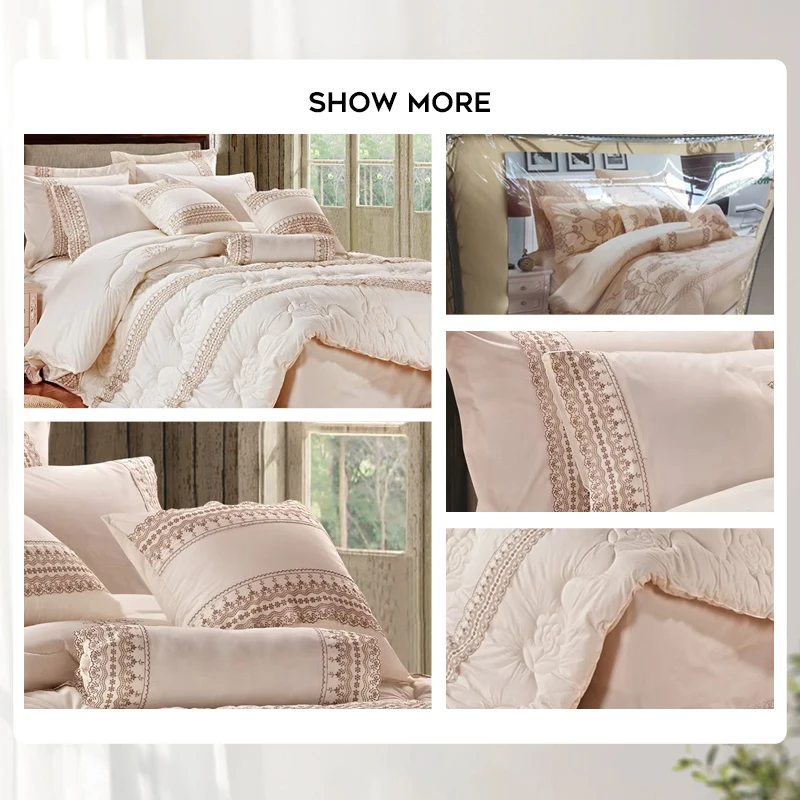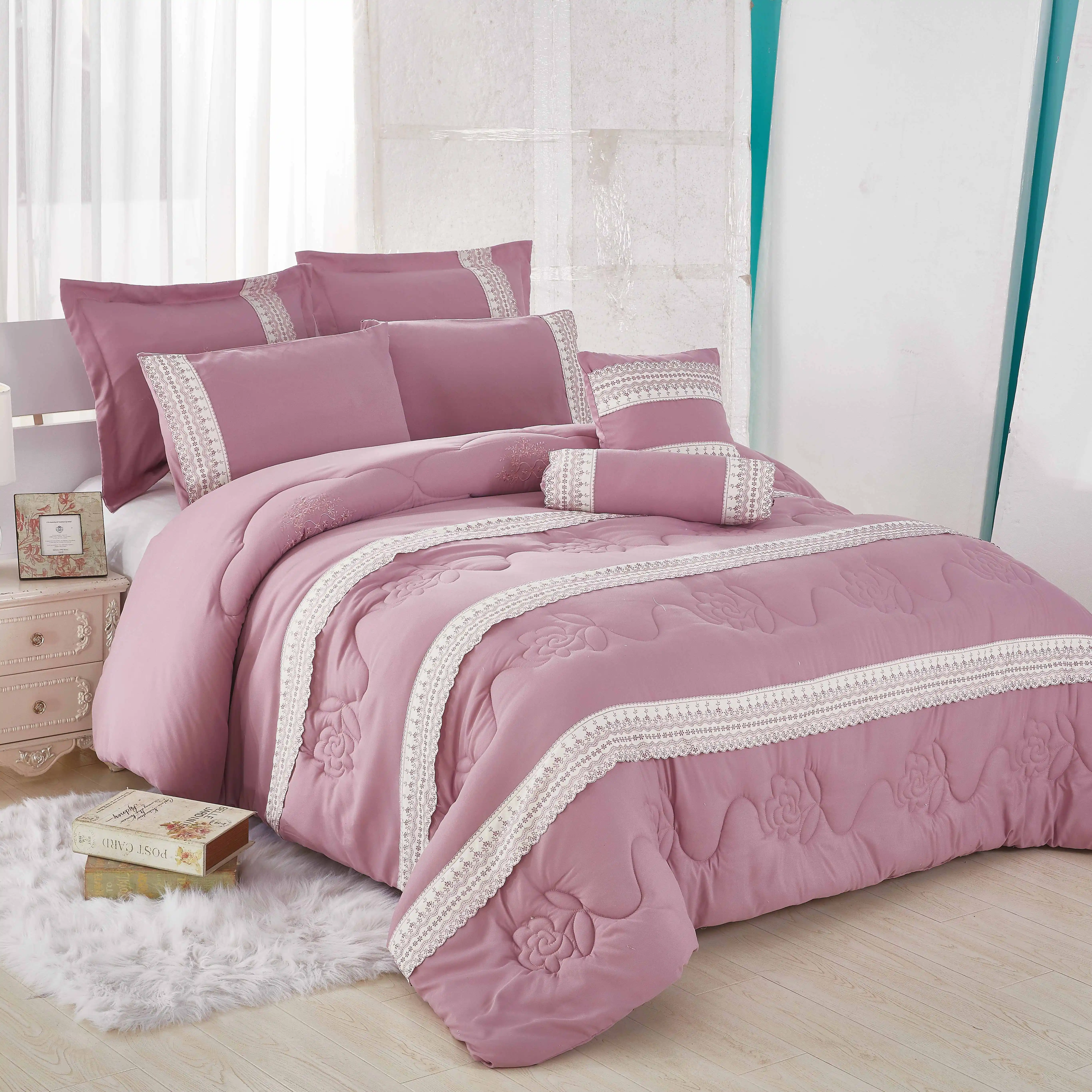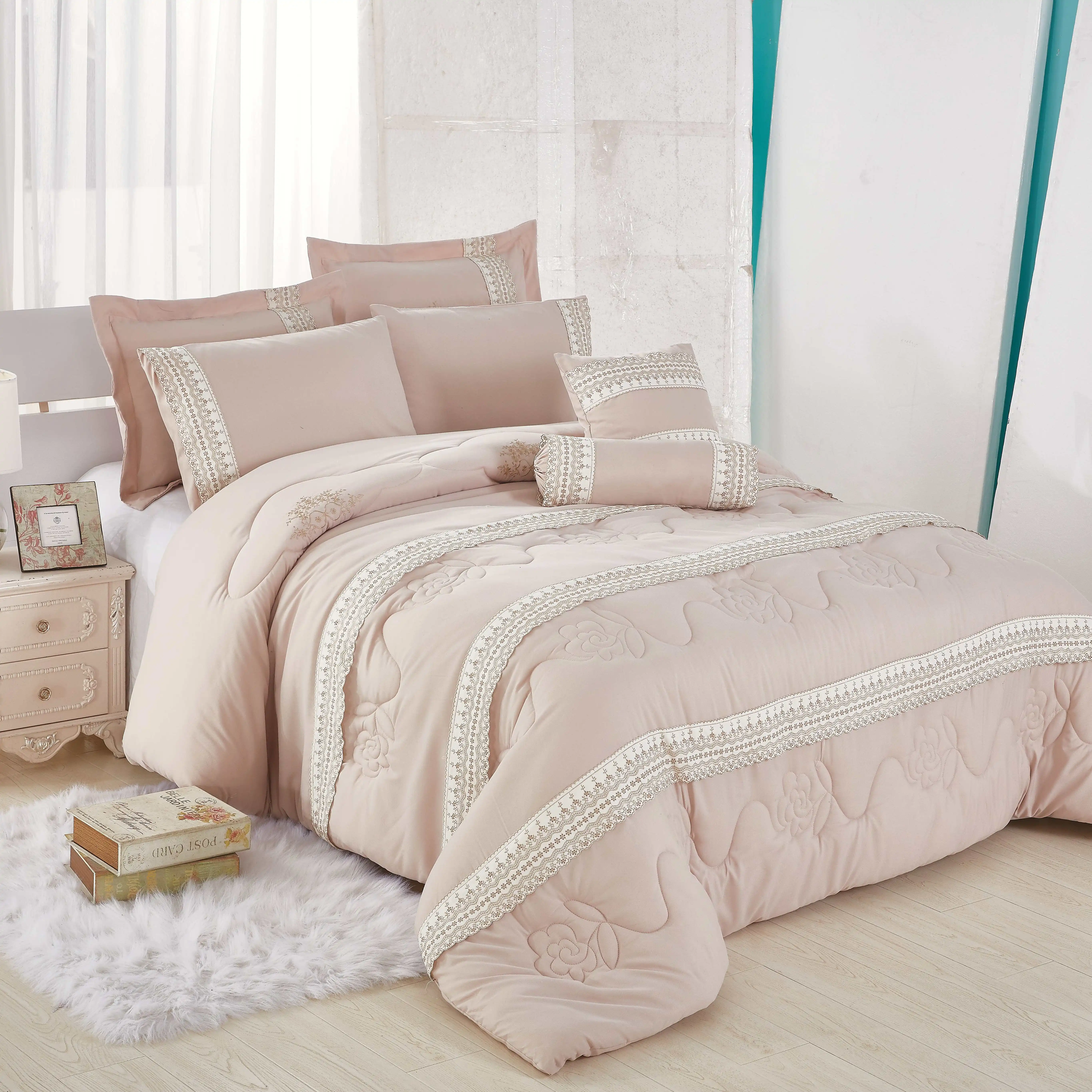Home Woven Polyester Comforter Set 7 PCS White Wedding Luxury Bedding Wholesale