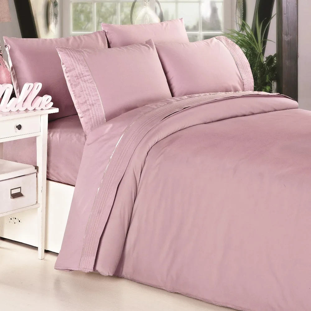 100% Bamboo Fiber Woven Modern Solid Color Bedding Set Super King Size Includes Flat Bed Sheet Fitted Duvet Cover