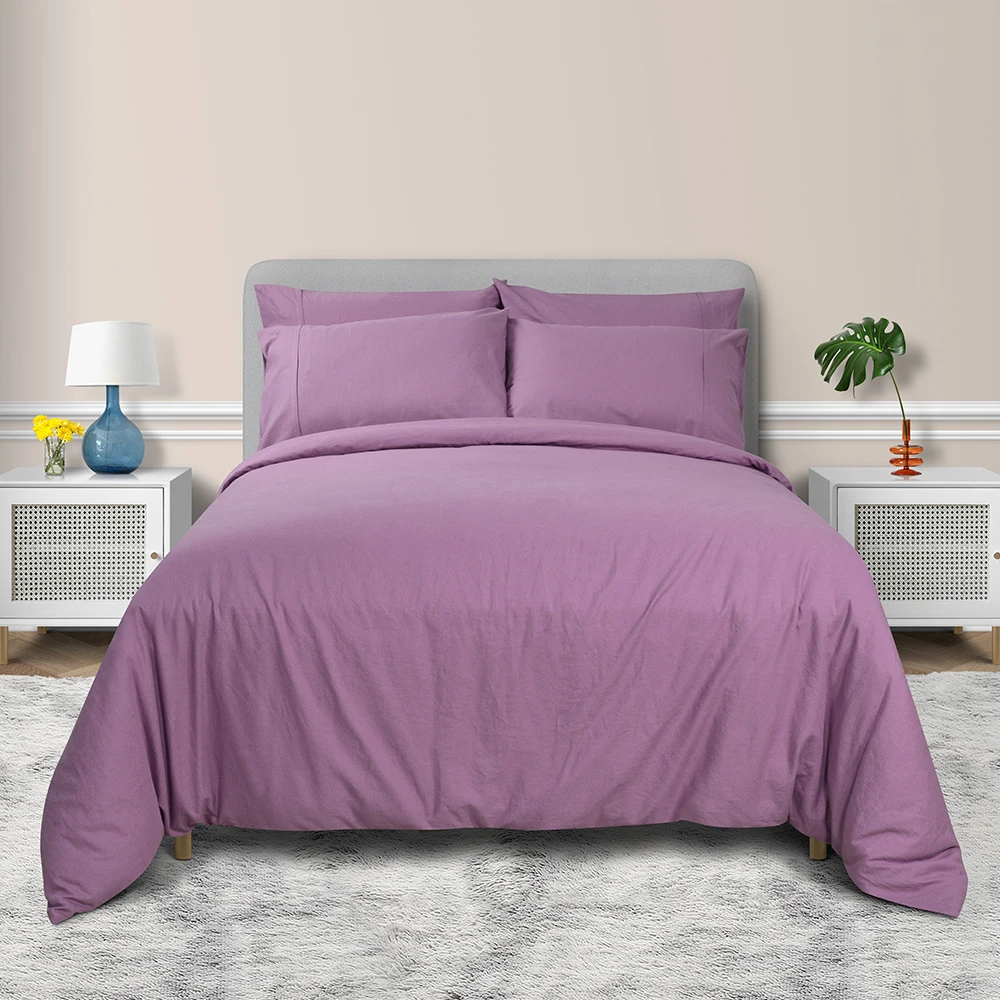 100% Bamboo Fiber Woven Modern Solid Color Bedding Set Super King Size Includes Flat Bed Sheet Fitted Duvet Cover