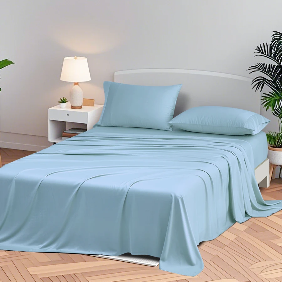 100% Bamboo Fiber Woven Modern Solid Color Bedding Set Super King Size Includes Flat Bed Sheet Fitted Duvet Cover