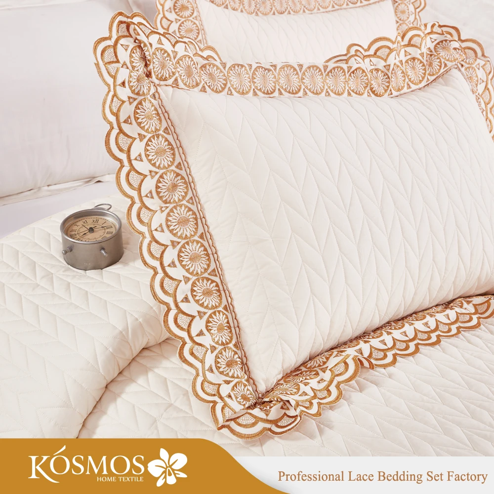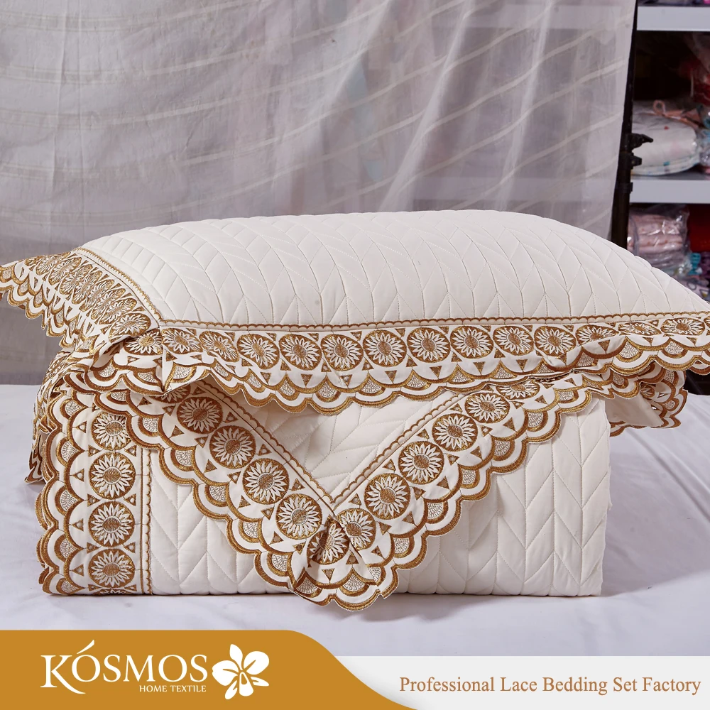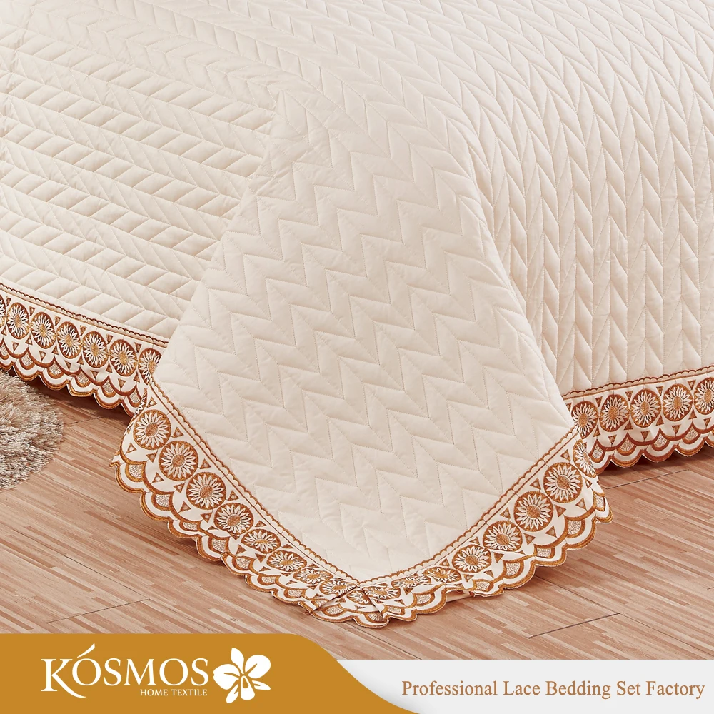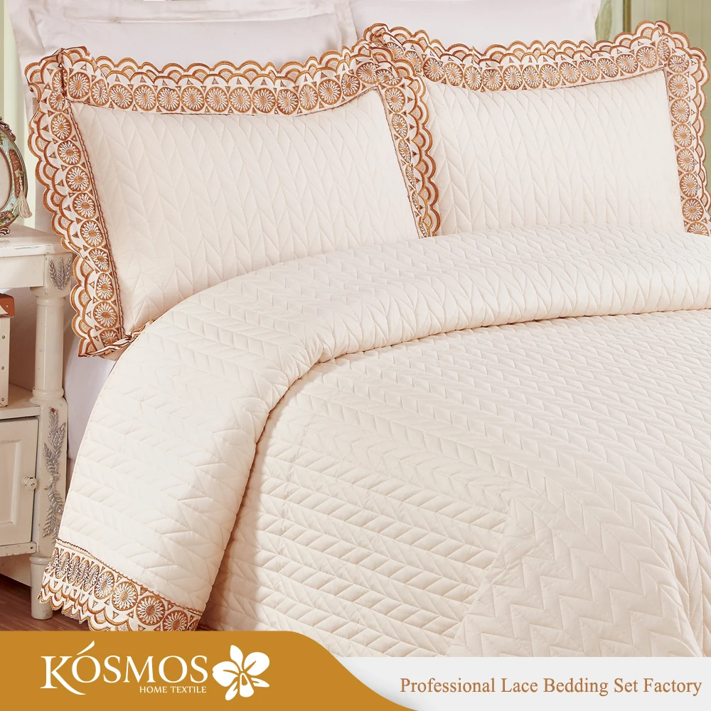 KOSMOS 3pcs Bedding Set Polycotton Embroidery Bed Cover Solid Pattern Lace Bedspread Woven Technique for Home Use