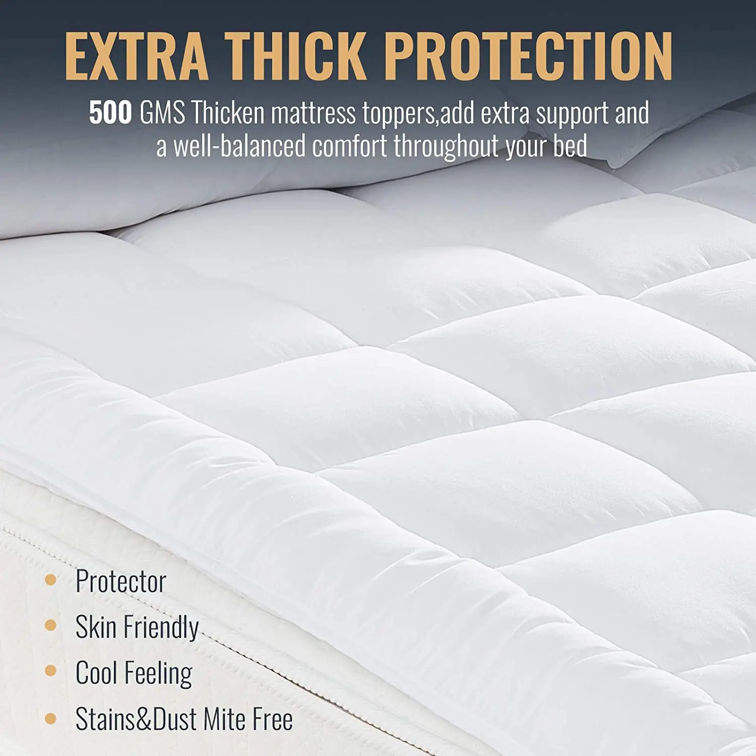 Quick Sleeping Soft Breathable Thick Quilted Down 4 Corner Elastic Microfiber Foldable Mattress Pad Topper