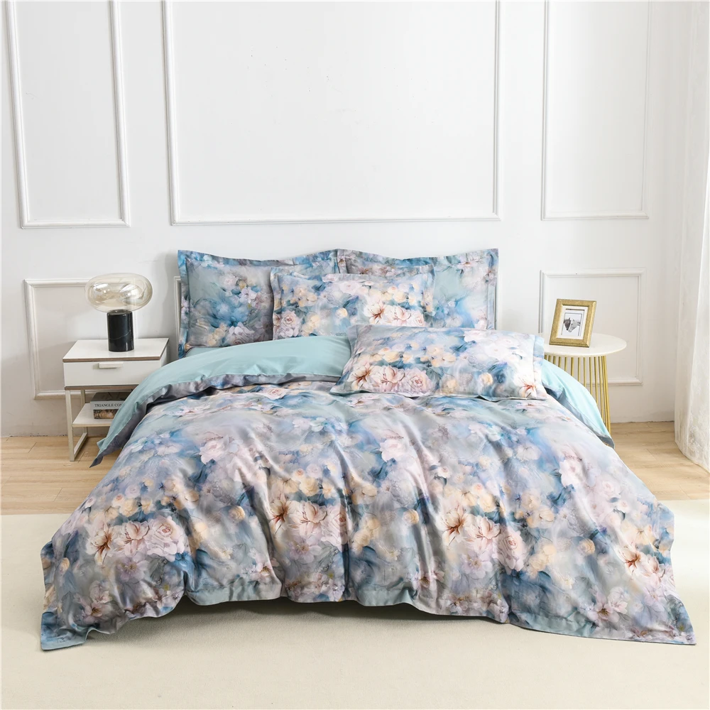 3D Quilt Cover Set Cotton Bed Sheets Printed Duvet Cover Floral Design Digital Printing Bedding Sets