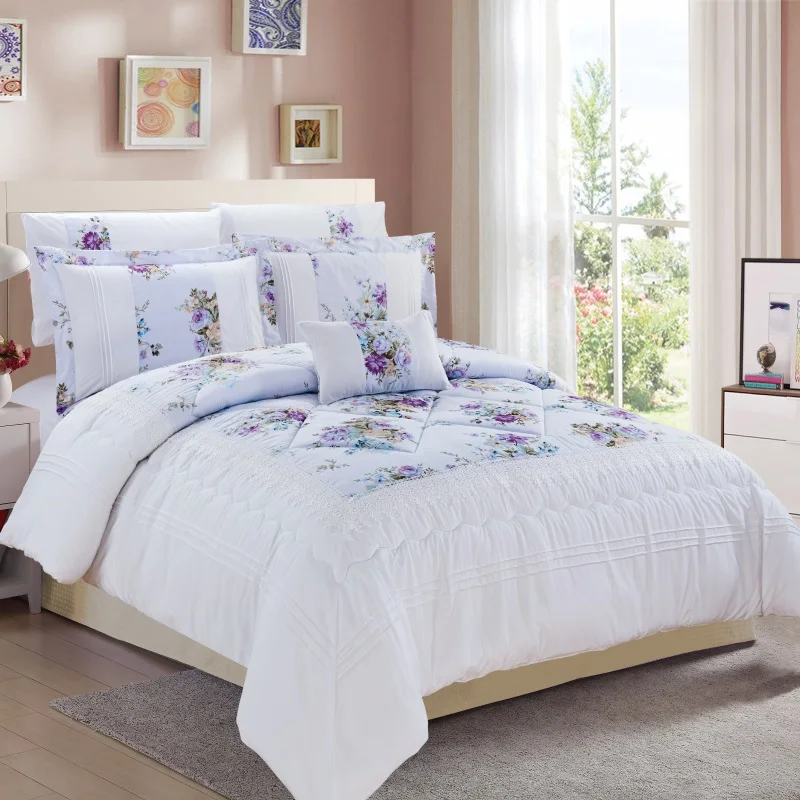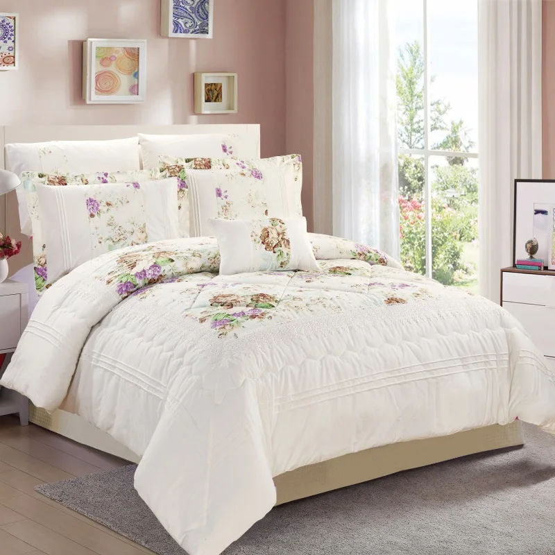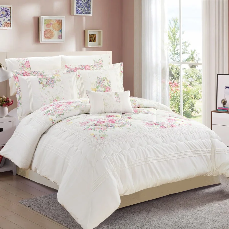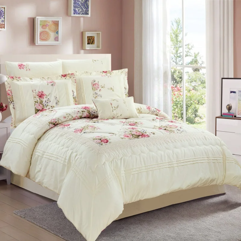 KOSMOS Factory Embroidery Lace Luxury Queen Size Polycotton Quilted Comforter Set