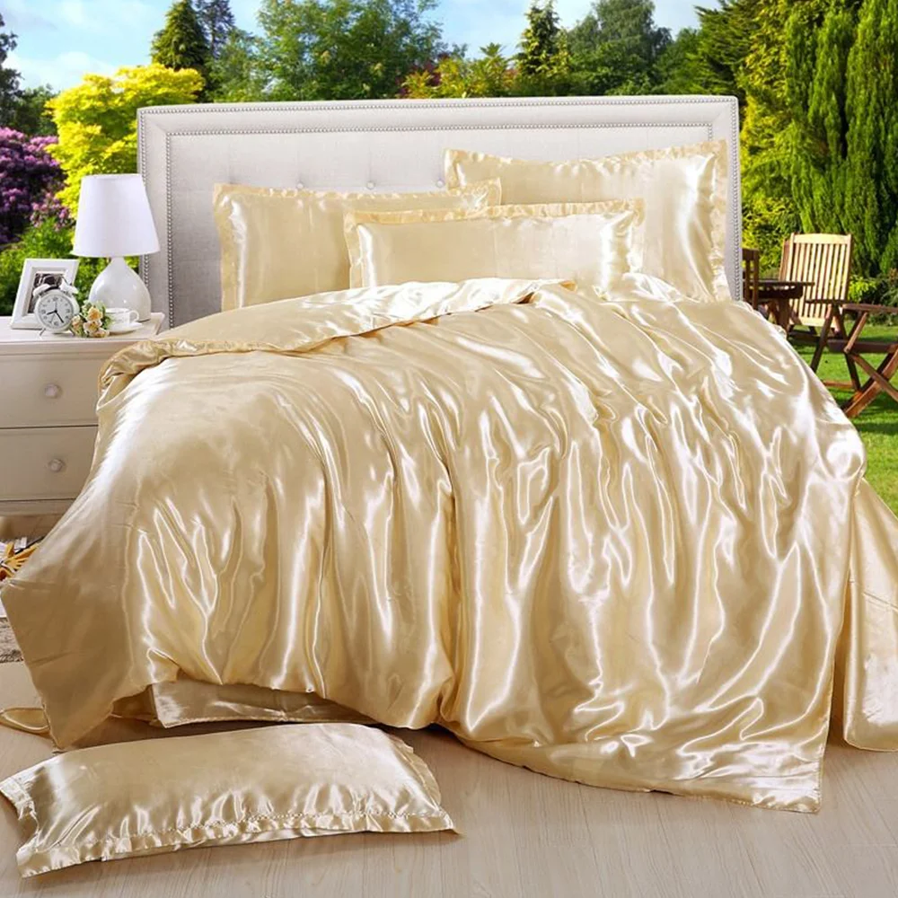 High Quality Ultra Soft Solid Color Luxury Smooth Comfortable Silk Satin Duvet Cover Bedding Set