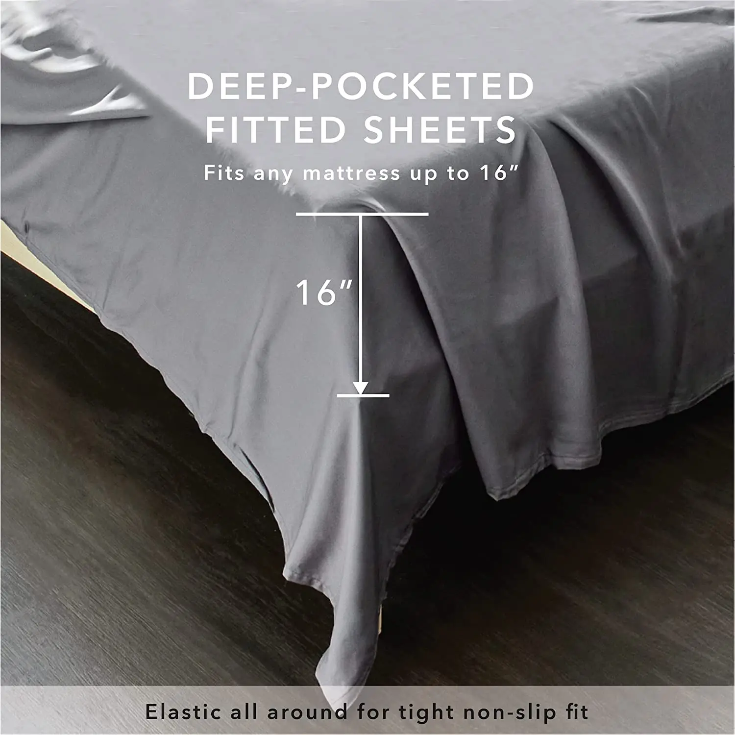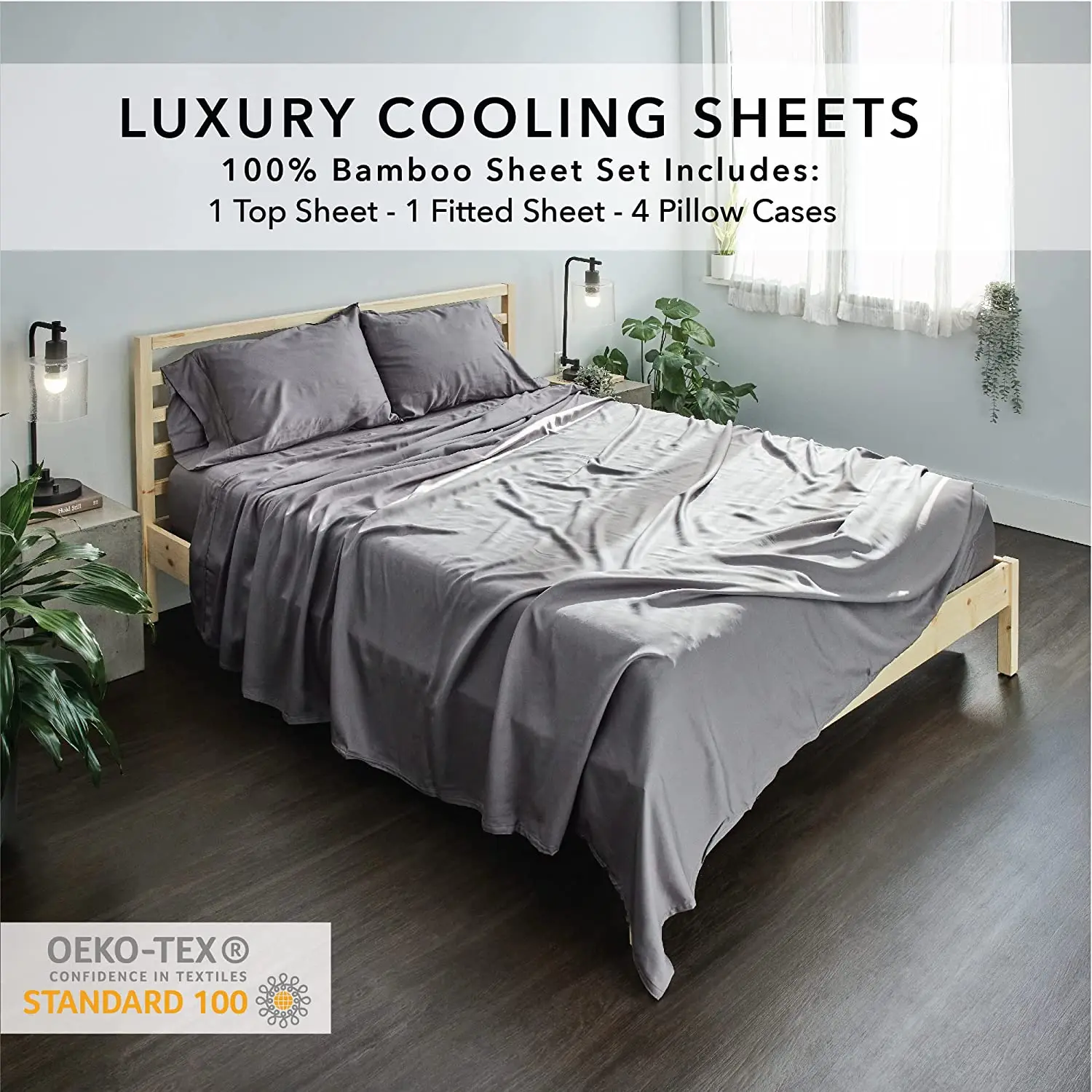 100% Bamboo Fiber Woven Modern Solid Color Bedding Set Super King Size Includes Flat Bed Sheet Fitted Duvet Cover