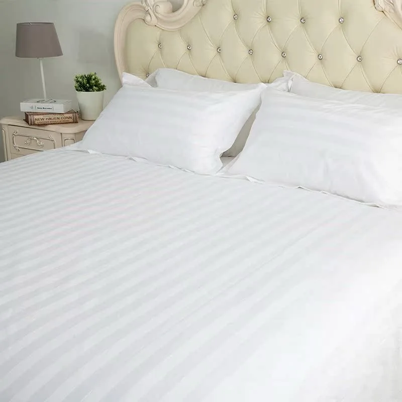 Modern White Stripe Organic Eco-Friendly 240TC All-Season Hotel Linen 4-Piece Cotton Bedding Set Soft Breathable Bed