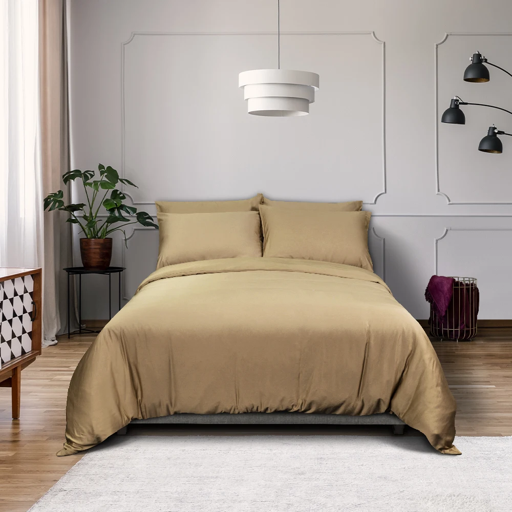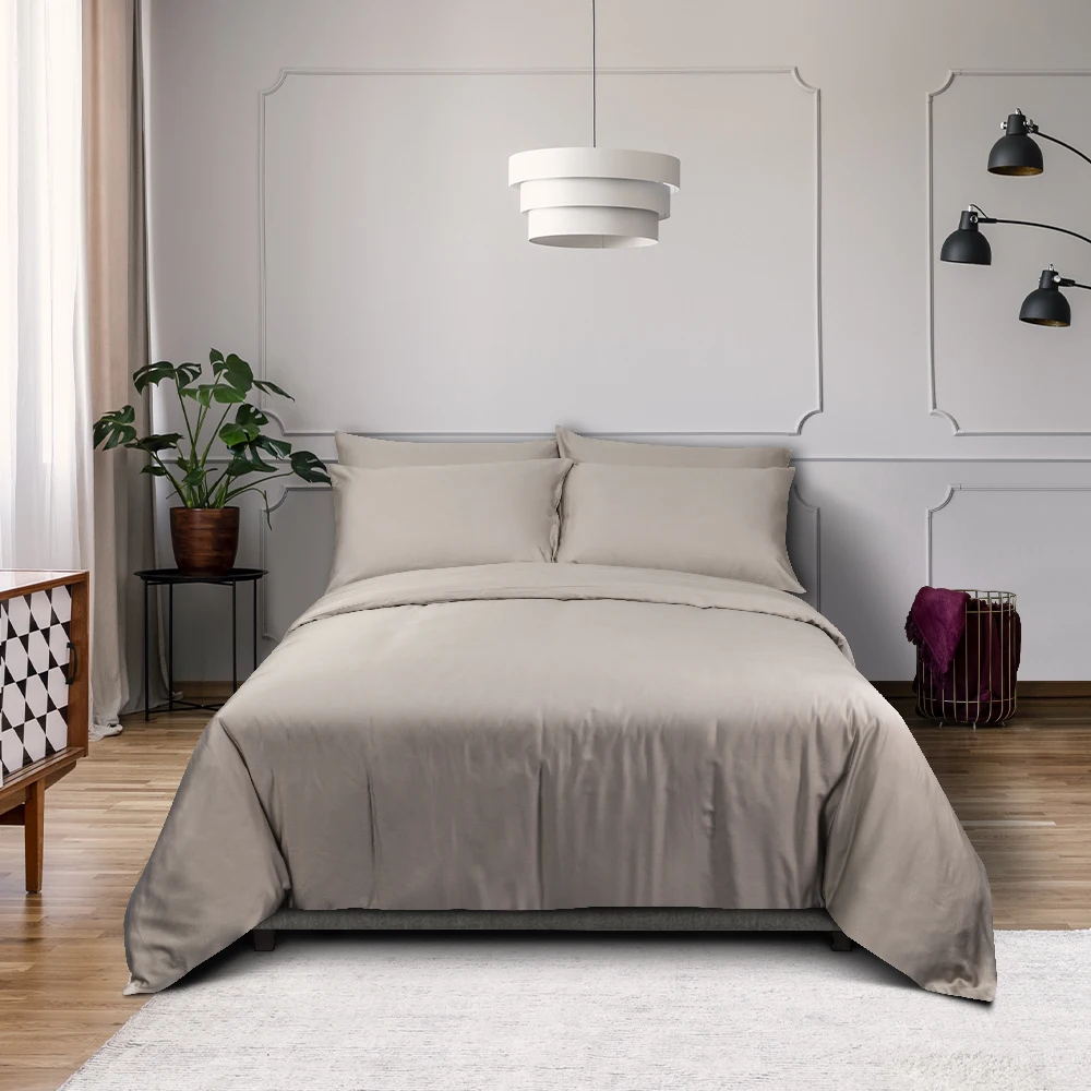 100% Bamboo Fiber Woven Modern Solid Color Bedding Set Super King Size Includes Flat Bed Sheet Fitted Duvet Cover