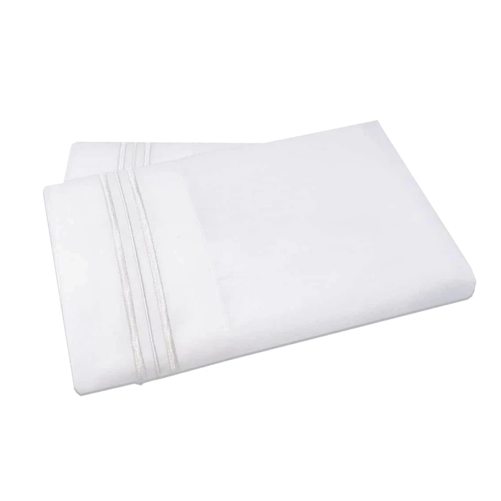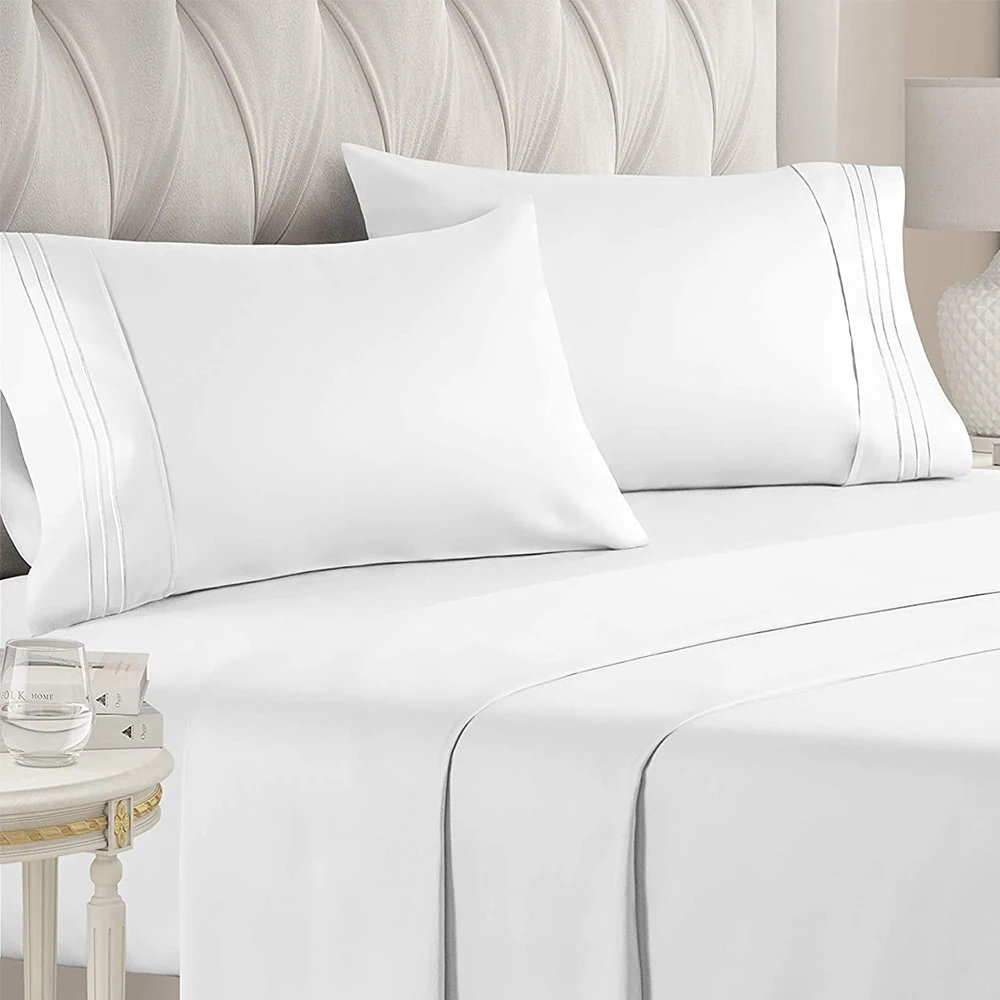 Wholesale Hotel Wrinkle Fade Stain Resistant 1800 Bedding Sheet & Pillowcases 3 Stripe Embroidery Cooling Bed Sheets Set