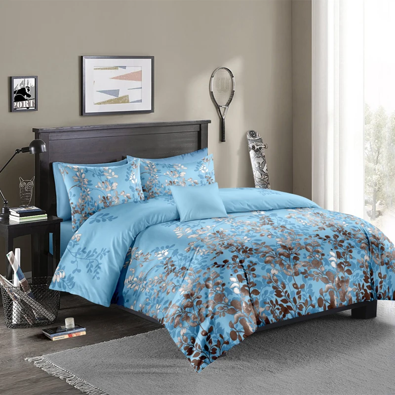 Professional Design Team Luxury Modern Style Blue Printed Polyester Quilt Duvet Bed Cover Bedding Set