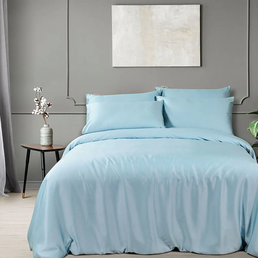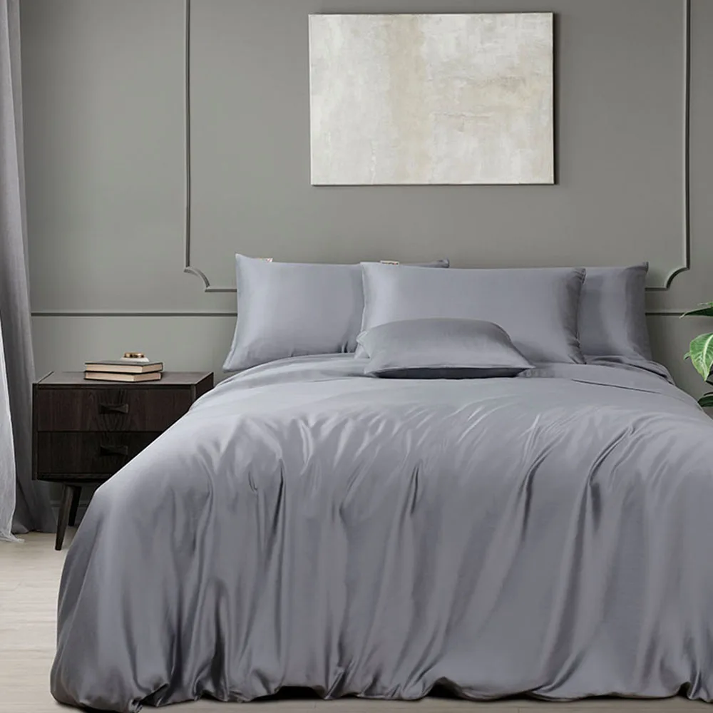 High Quality Plain Bed Sheet Pure Silk Duvet Cover 100% Organic Lyocell Bedding Set Eucalyptus Solid Bedsheet King Size