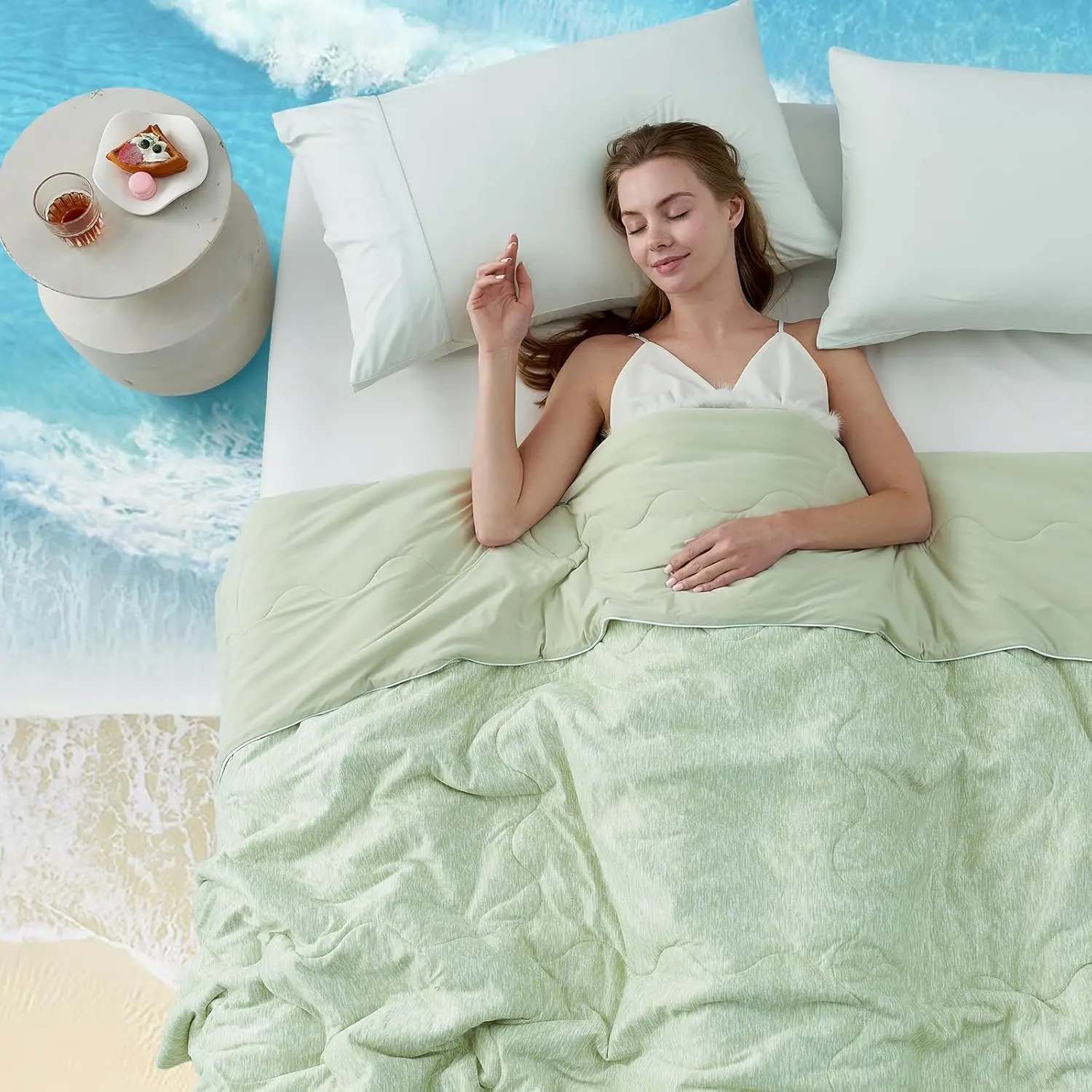 Heather Cooling Comforter , Q-Max 0.4 Cooling Comforters for Hot Sleepers,All Season Reversible Bedding Comforter