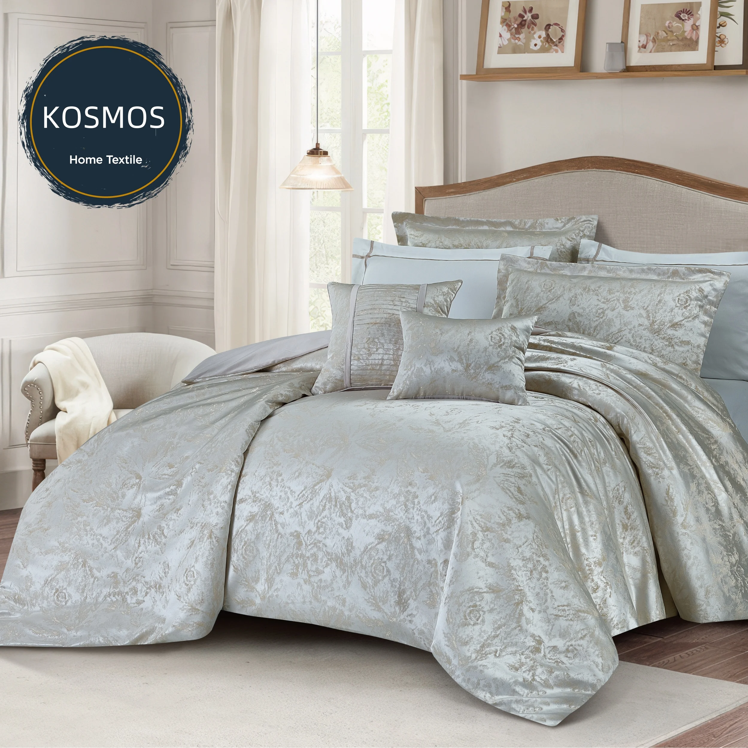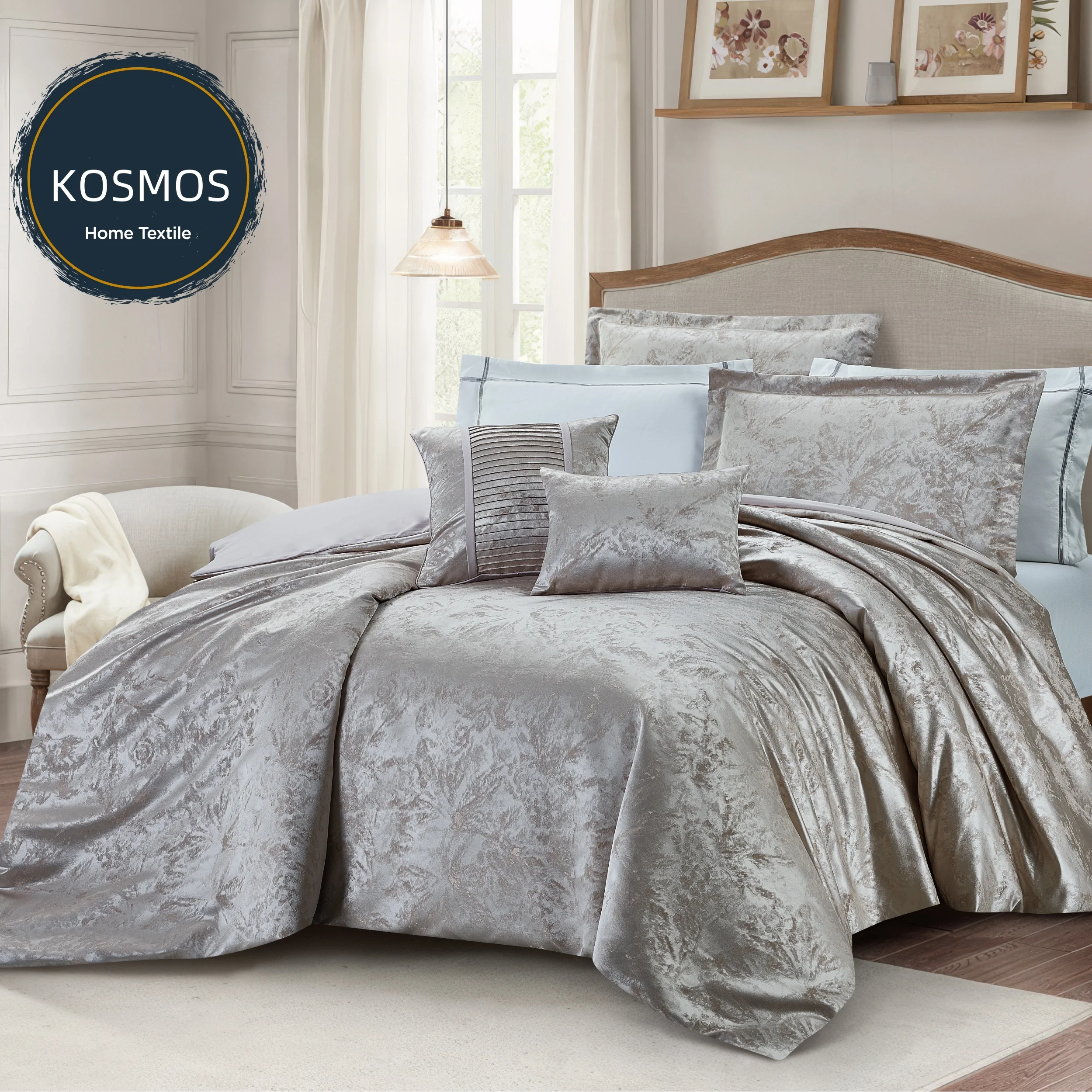 Luxury Jacquard Cooling Smooth Plain Microfiber Home Embroidery 8-Piece Comforter Set in PVC Bag