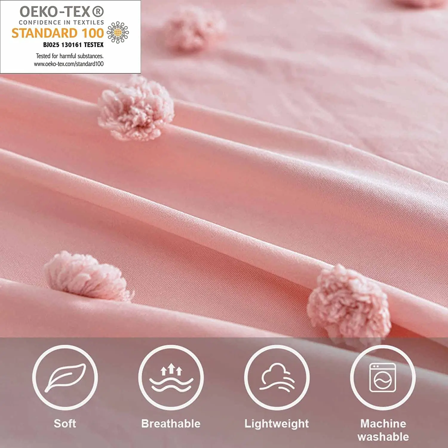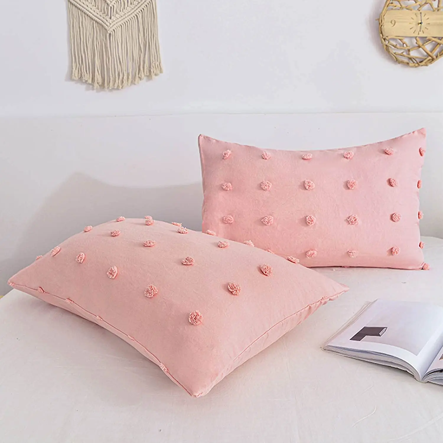 Personalized Pink Tufted Duvet Cover 3pcs Boho Embroidery Dot Microfiber Bedding Comforter Cover Set