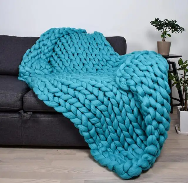 Wholesale Breathable Knitted Weighted Blanket Hot Sale Chunky Knitted Weave Blanket for Winter