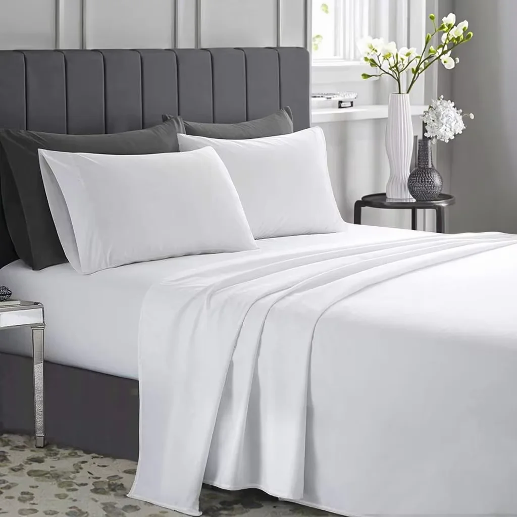 Pure Cotton Satin Linen Bed Sheets and Quilt Cover Set Pure White 4 Piece Bedding Set for Hotel Hospital Home Use