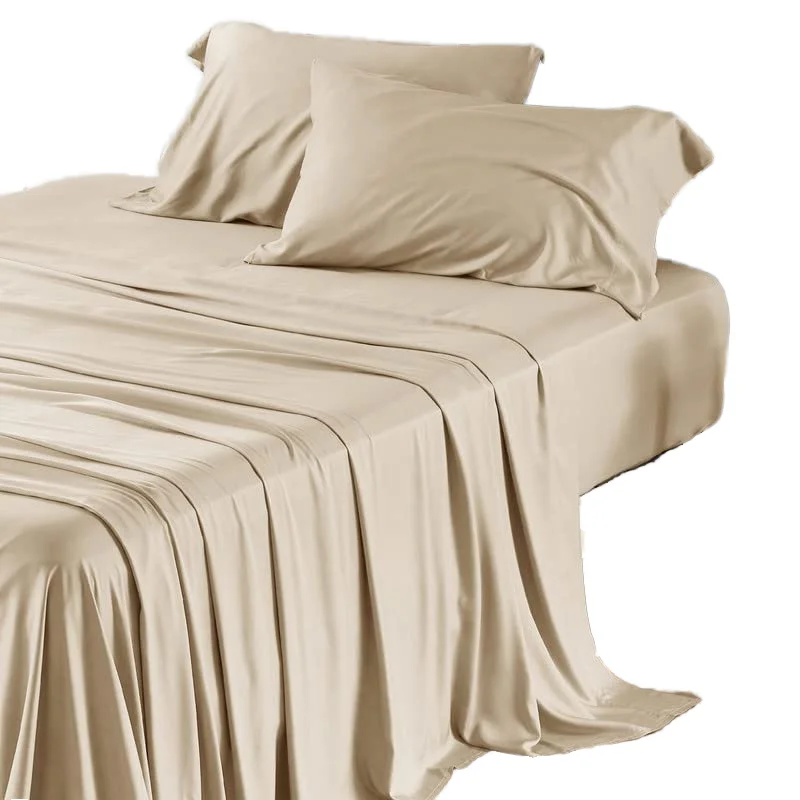 4pcs 100%Bamboo Fiber Woven Eco-Friendly Flat Fitted Sheet Set Solid Color