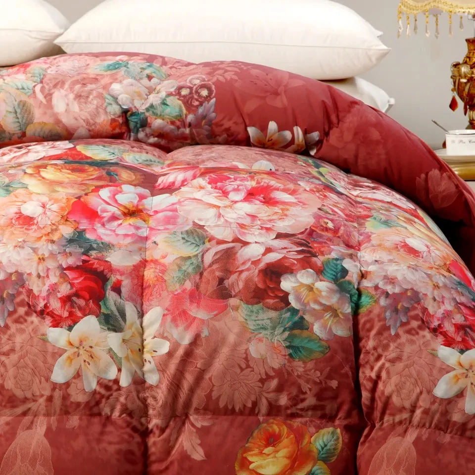 All Season Printed Flower Pattern Design Soft Polyester 200x230cm Victor TTC Duck Down Quilt