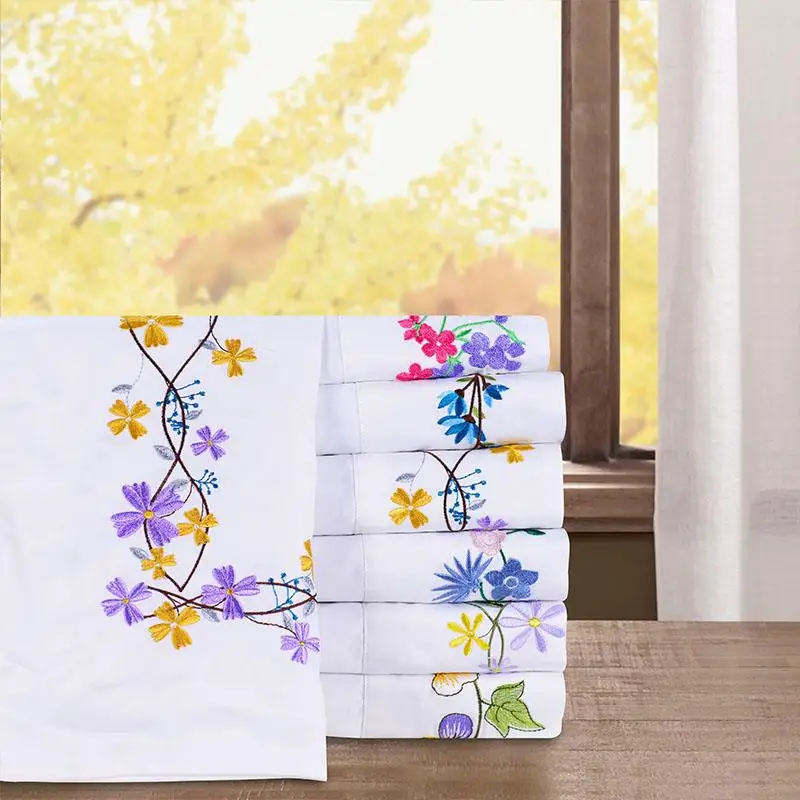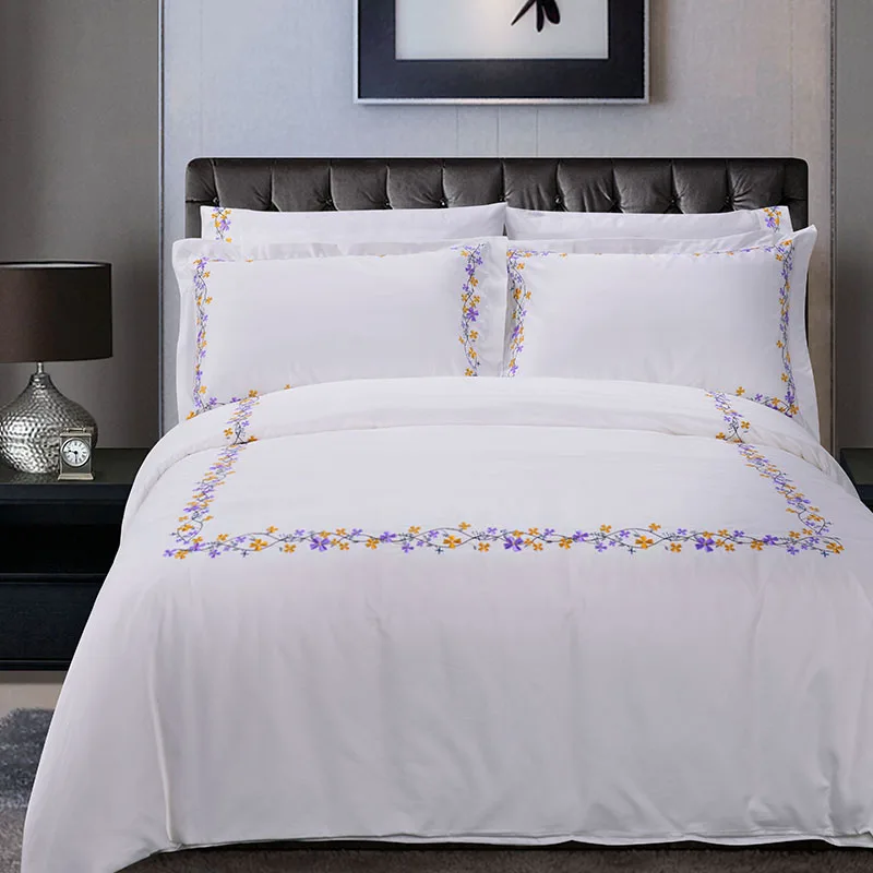 Single Bed Sheets 100% Cotton Embroidery Bedding Set Duvet Cover Bed Sheets White