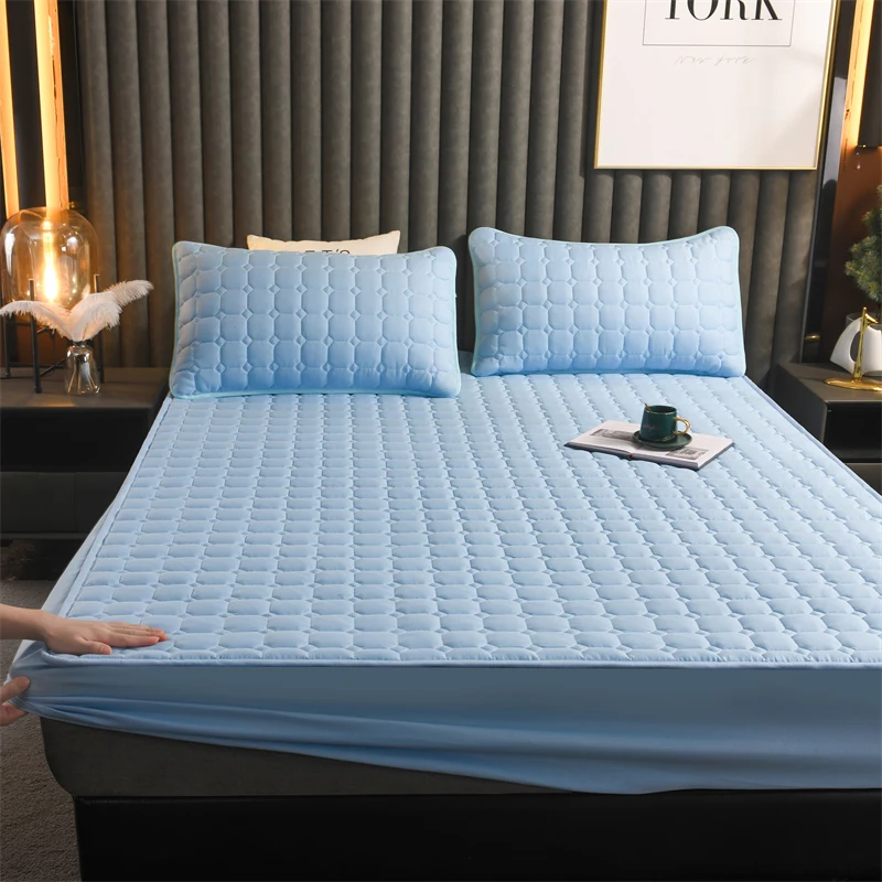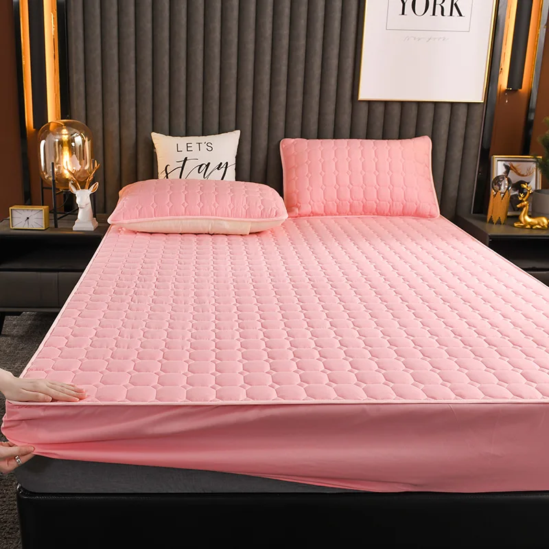 Polyester 3pcs Solid Color Bed Cover Mattress Protector 3pcs Bed Fitted Sheet