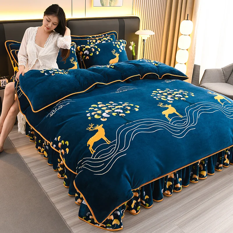 New Design Printed Double Duvet Cover Set Microfiber Bed Sheets Bedding Set Queen Size Bed Skirt