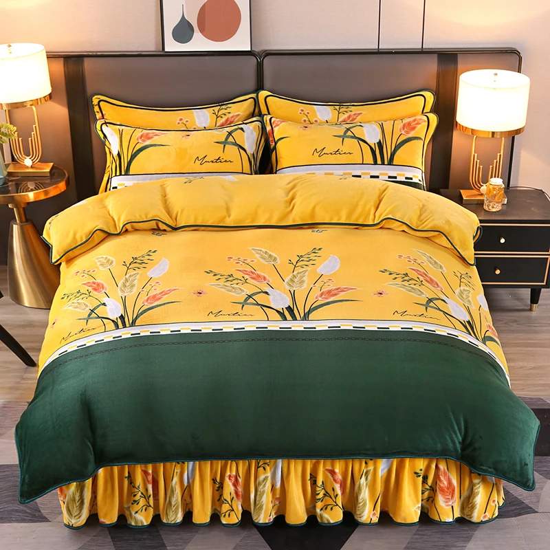 Best Selling High Quality Skin Friendly Wholesale Custom Size King Quilt Cover Bed Skirt Style Bed Sheet Girls 4pcs Bedding Set