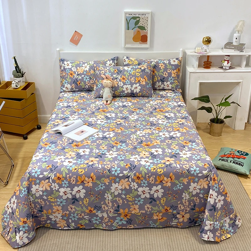 Hotel BedSheets Sets 100% Cotton Flowers Patterns Wholesale Solid Color Bedsheet Bedding Set