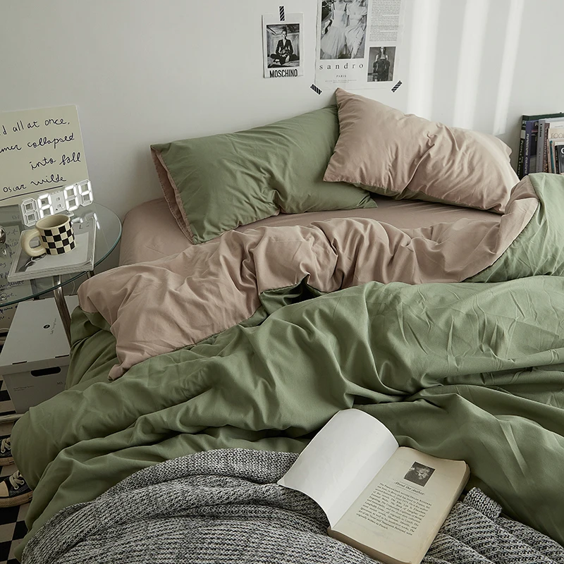 Wholesale Plain Color Solid Design Soft Confortable 4pcs 2pillow Covers + Duvet Cover +bedsheet Bedding Set