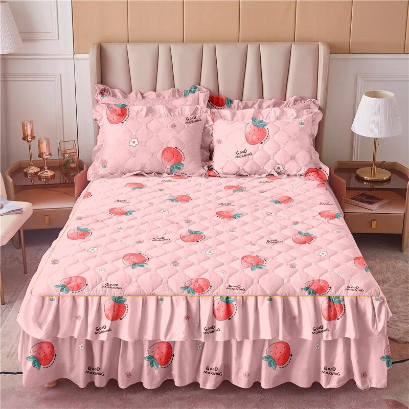 Wholesale Bed Skirts Set Double Layer Bedspread Floral Printed Bed Sheet Bilateral Bed Skirt + 2 Pair of Pillowcase Bedsheets